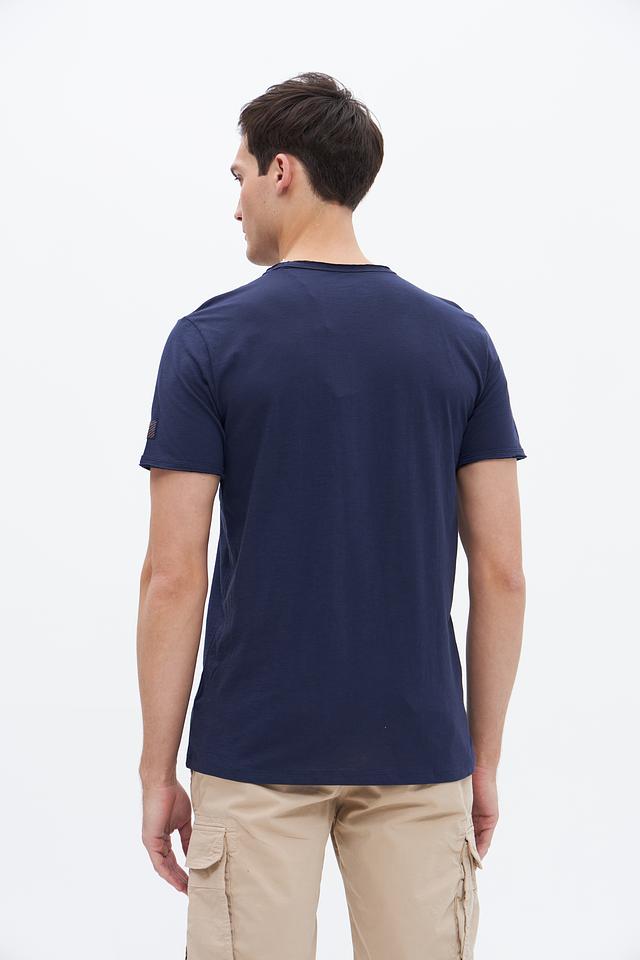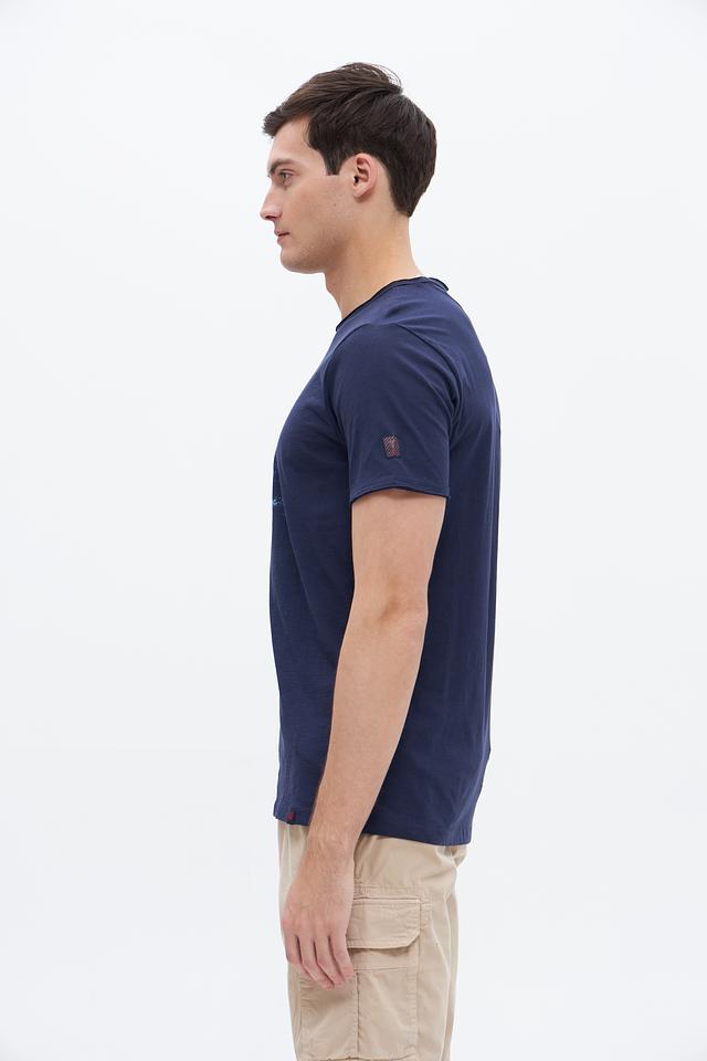 Мужская футболка Time Zone темно-синего цвета с оригинальным принтом в виде мотороллера. Изготовлена из 100% хлопка, обеспечивающего комфорт и воздухопроницаемость. Состав: хлопок 100%