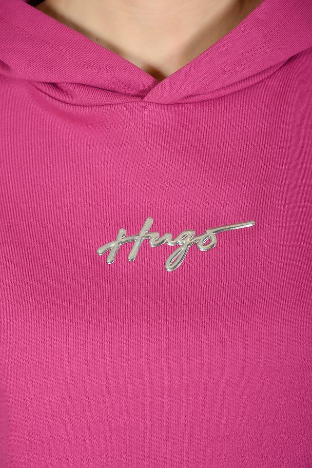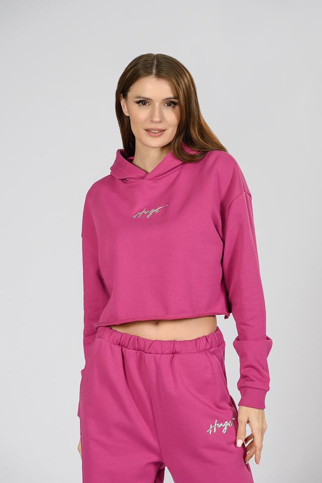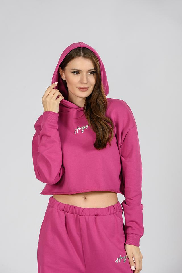 Эта женская толстовка от Hugo выполнена в ярком цвете фуксия и станет отличным дополнением к вашему гардеробу. Модель имеет укороченный крой, который подчеркивает фигуру и придает образу современный вид.
