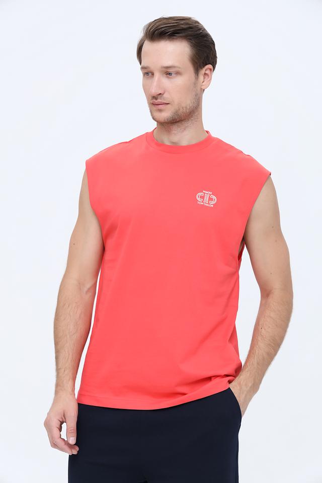 Алая футболка Tom Tailor без рукавов — стильный выбор для активного образа. Модель выполнена из 100% хлопка, обеспечивая комфорт в жаркую погоду. Декорирована небольшим логотипом бренда на груди. Состав: хлопок 100%