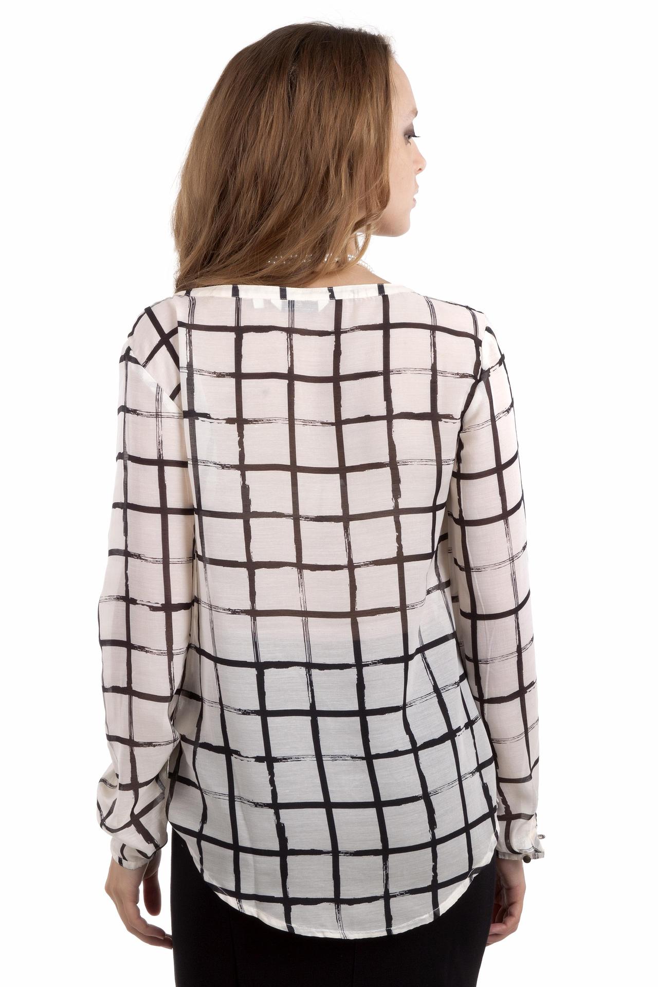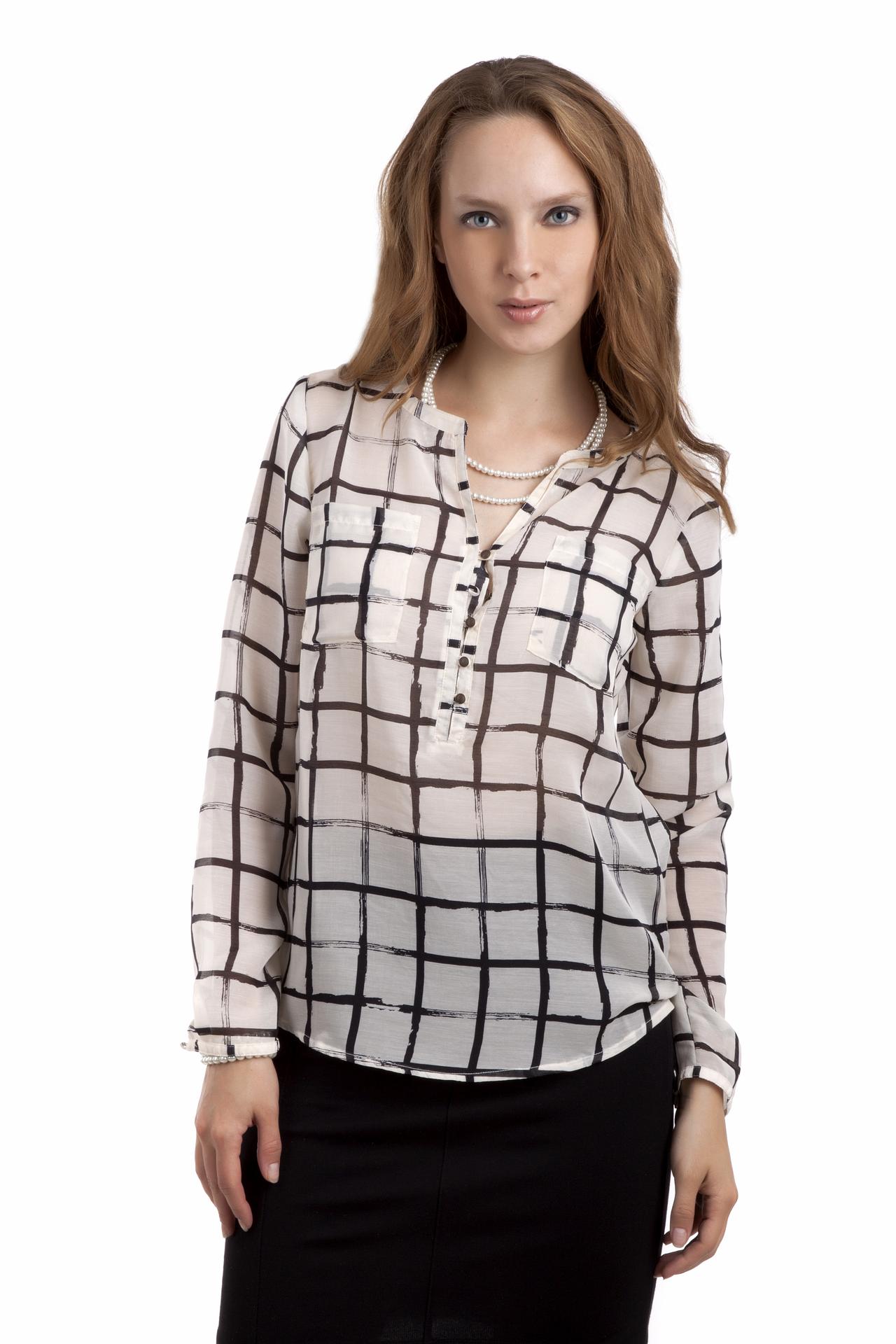 Блуза Tom Tailor белая с чёрной клеткой и пуговицами