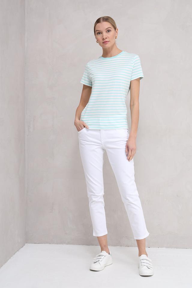 Женская футболка Tom Tailor голубого цвета с классическим полосатым дизайном. Изготовлена из 100% хлопка, обеспечивающего комфорт и воздухопроницаемость. Отличный выбор для повседневного образа. Состав: хлопок 100%