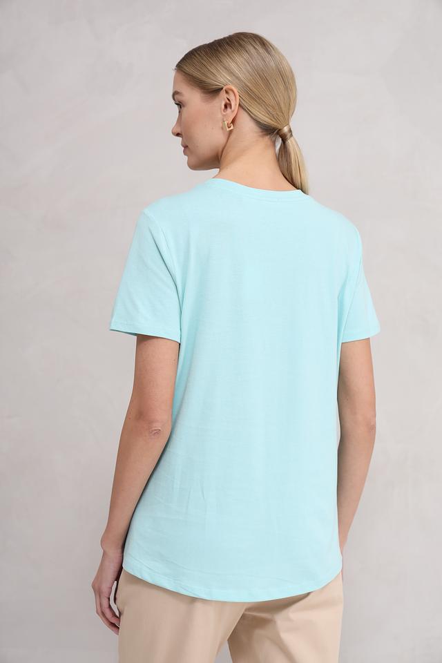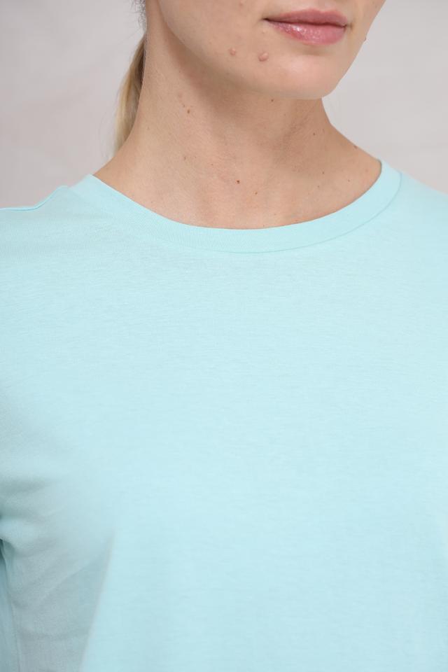 Благодаря своему светлому мятному оттенку, эта футболка легко сочетается с различными элементами гардероба. Она идеально подходит для создания как casual, так и более элегантных образов. Простой и лаконичный дизайн делает её универсальной и вневременной.