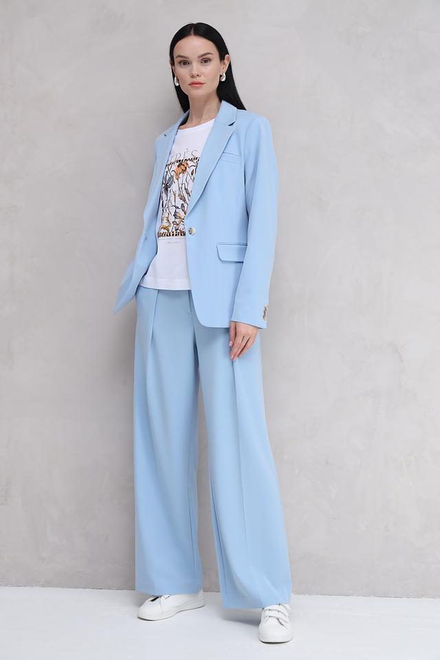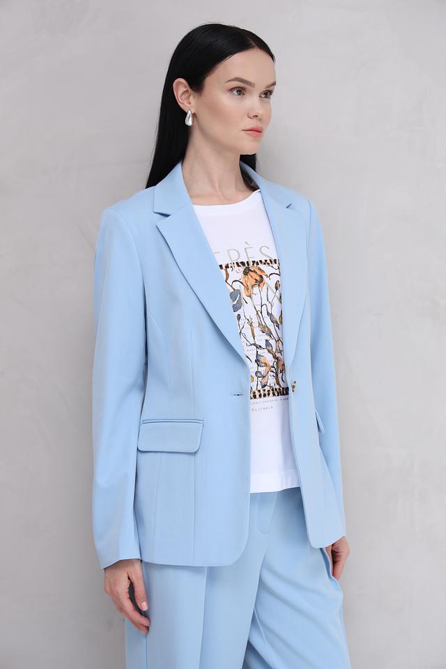 Жакет имеет приталенный силуэт, который подчеркнет достоинства фигуры. Классический крой с лацканами и застежкой на пуговицы делает его универсальным для различных случаев – от деловых встреч до повседневной носки.