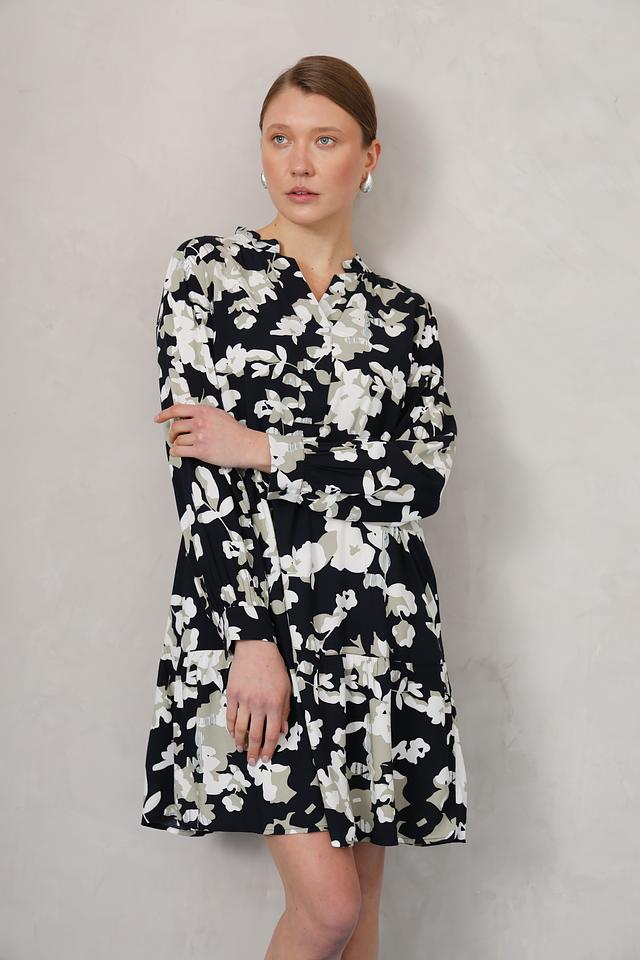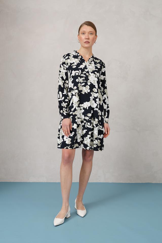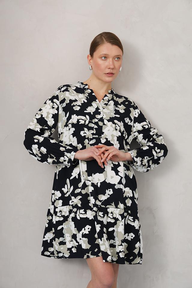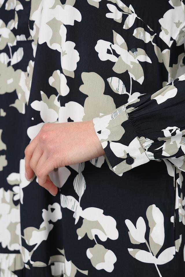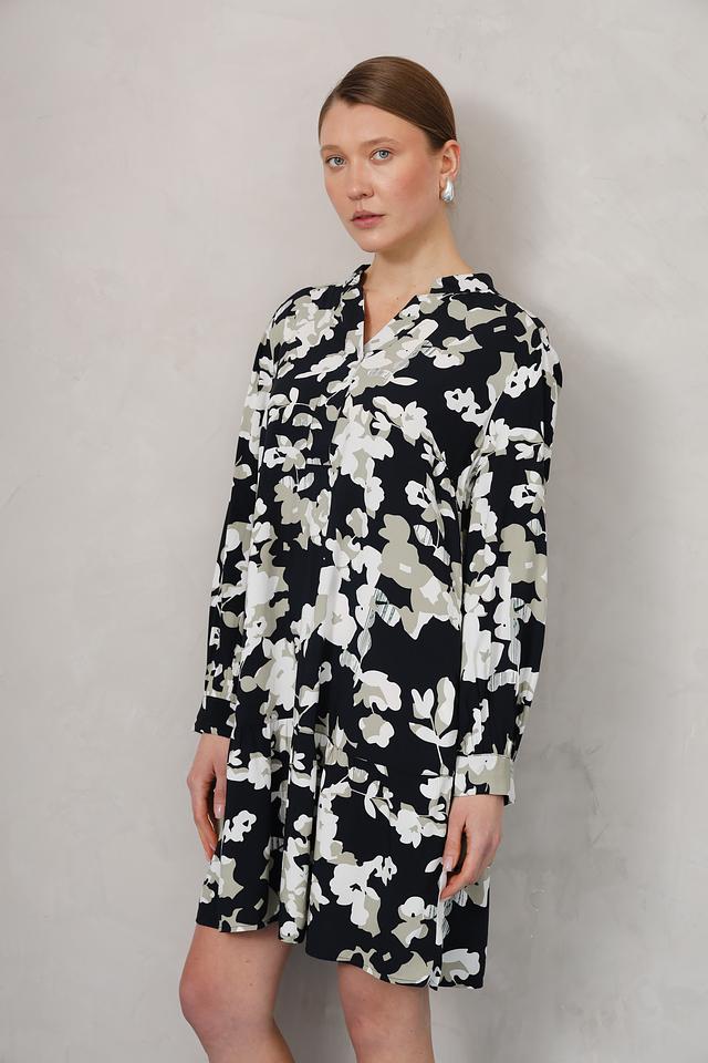 Это стильное платье от Tom Tailor станет прекрасным дополнением к вашему гардеробу. Платье выполнено в чёрном цвете и украшено изящным цветочным принтом, состоящим из белых и светло-зелёных цветов.