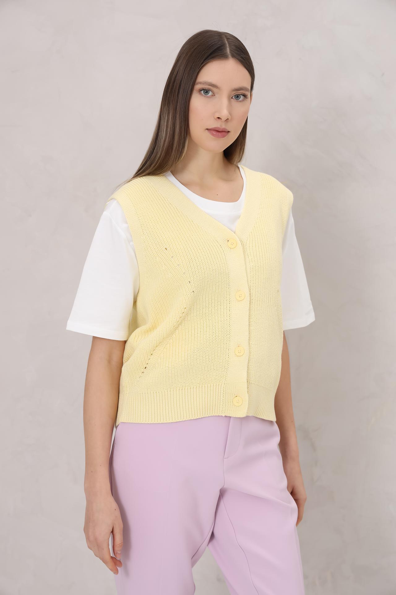 Жилет Tom Tailor жёлтый вязаный на пуговицах женский