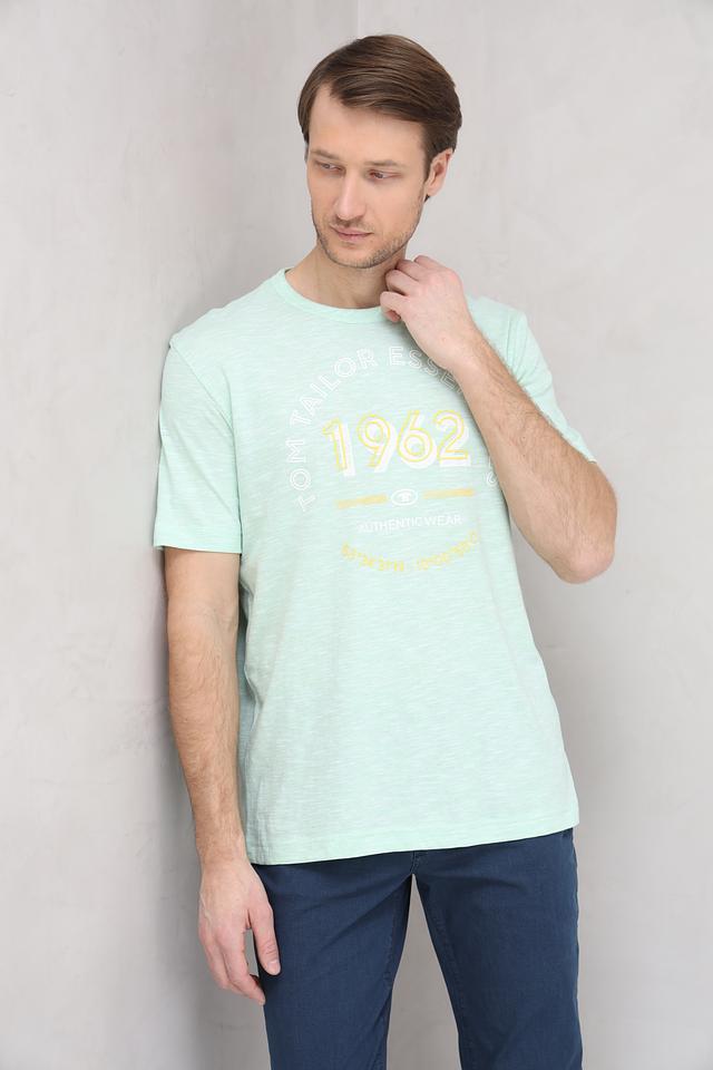 Мятная футболка Tom Tailor с круглым вырезом и оригинальным принтом в винтажном стиле. Изготовлена из 100% хлопка, обеспечивающего комфорт и воздухопроницаемость. Состав: хлопок 100%