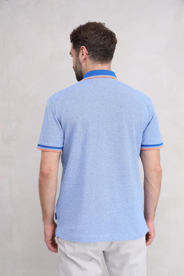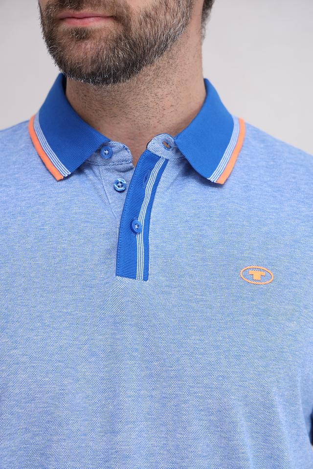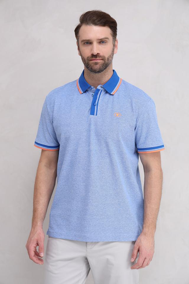 Мужское поло от Tom Tailor голубого цвета с контрастной отделкой воротника и планки. Изготовлено из мягкого хлопка с добавлением эластана для комфорта и свободы движений. Состав: хлопок 98%, эластан 2%