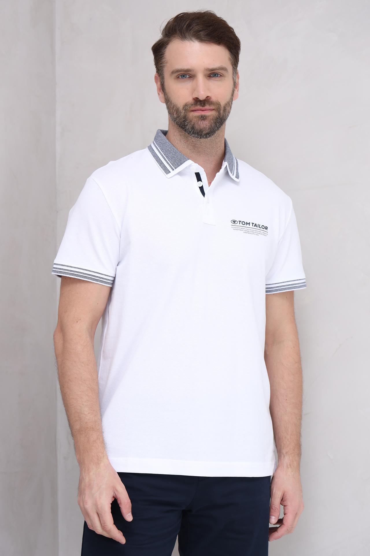 Поло Tom Tailor белого цвета с контрастной отделкой