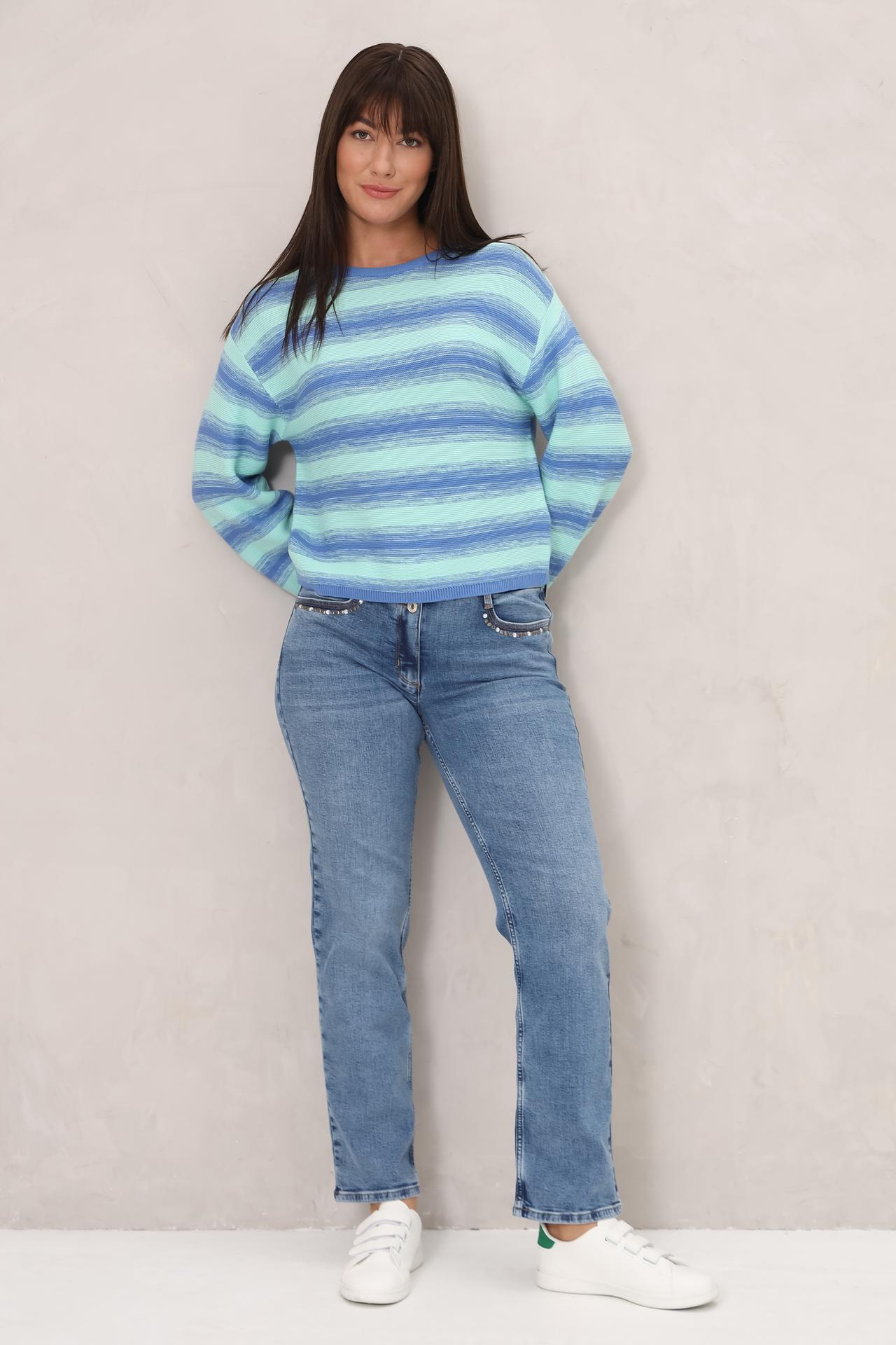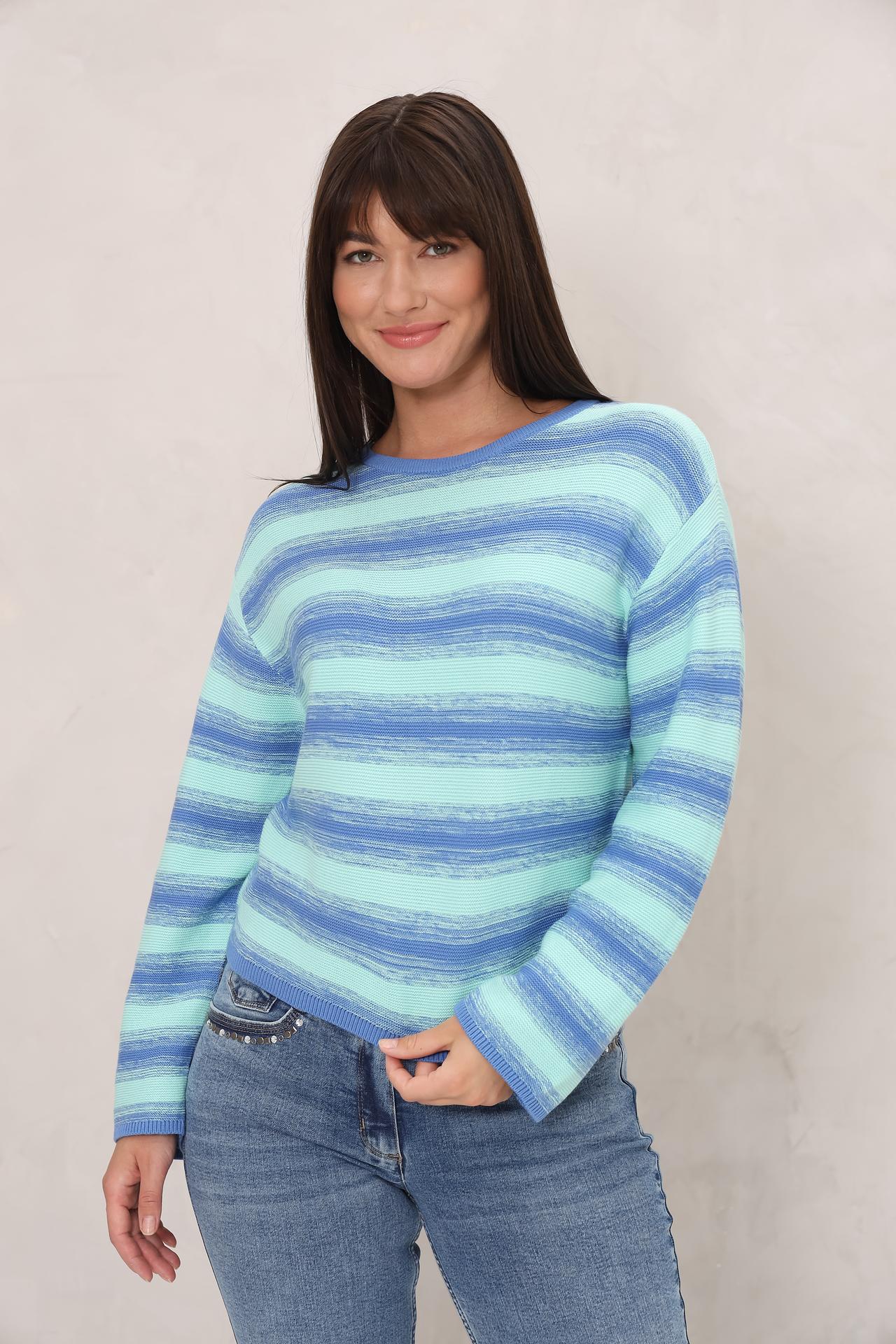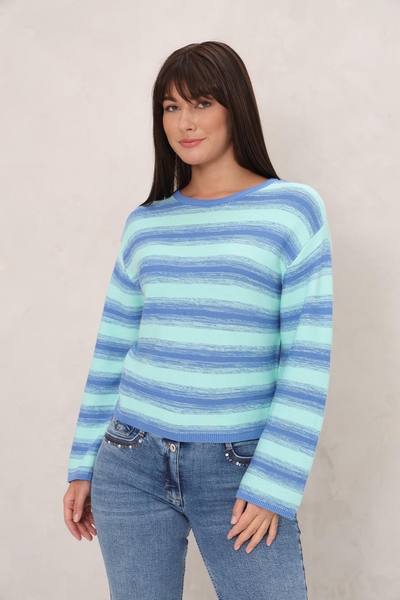 Полосатый пуловер Tom Tailor в бирюзово-синей гамме