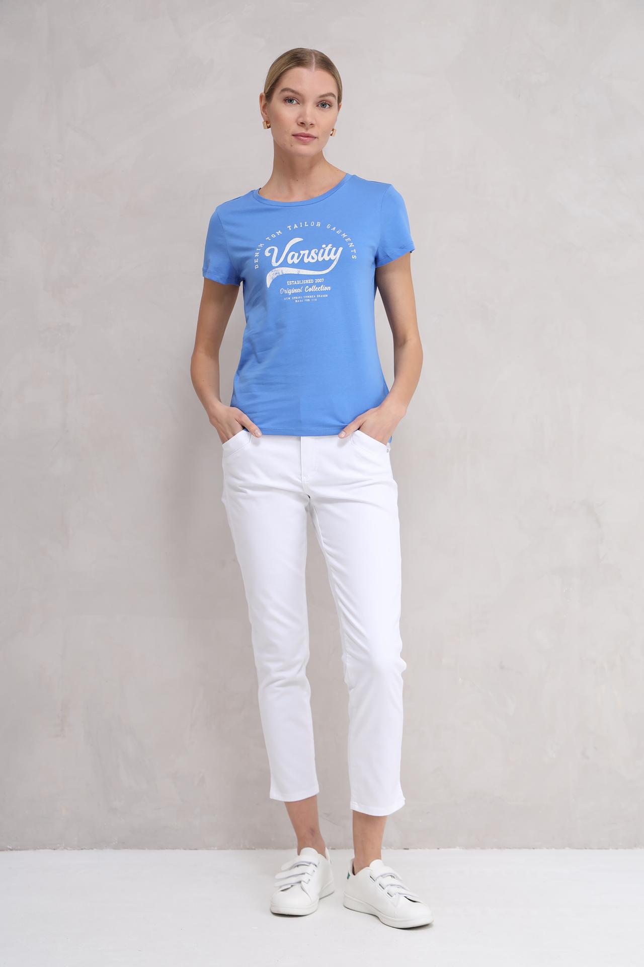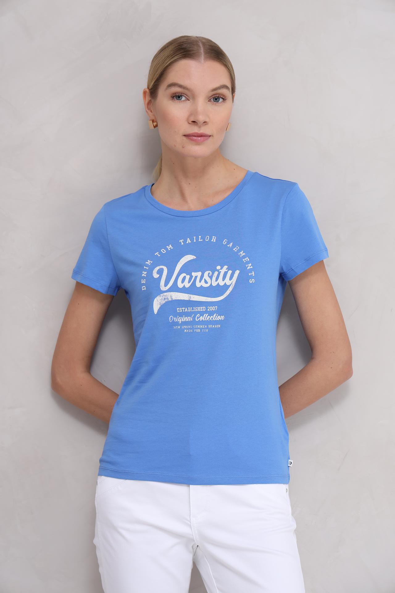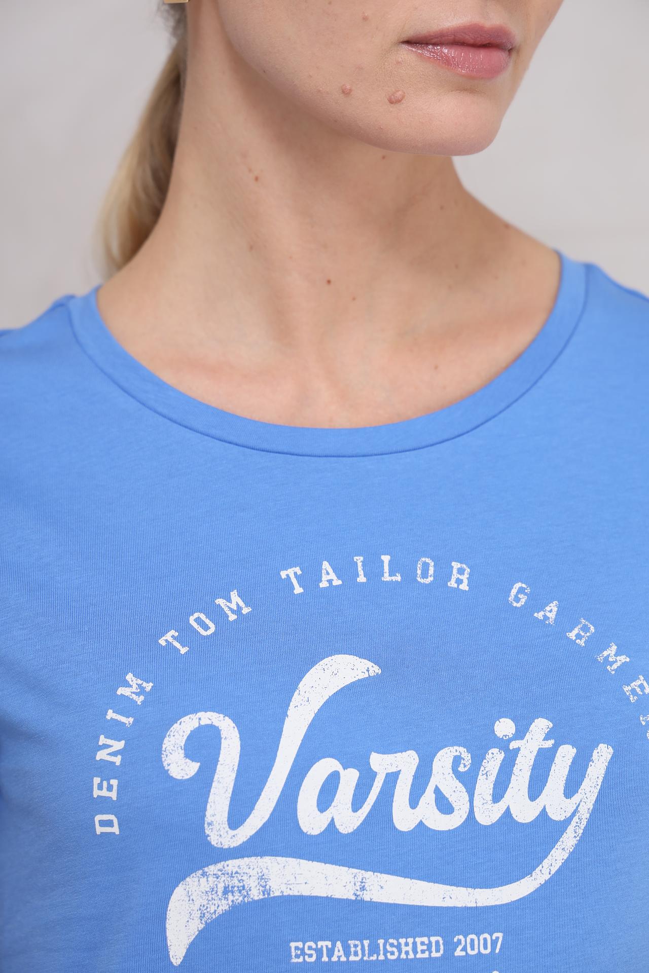 Классическая женская футболка от Tom Tailor выполнена из 100% хлопка, обеспечивающего мягкость и комфорт в течение всего дня. Футболка прямого кроя с короткими рукавами и круглым вырезом горловины идеально подходит для создания расслабленных повседневных образов. Оригинальный принт добавляет модели индивидуальности и делает ее отличным выбором для тех, кто ценит стиль и удобство. Эта футболка станет незаменимой частью вашего гардероба и легко сочетается с джинсами, шортами и юбками.