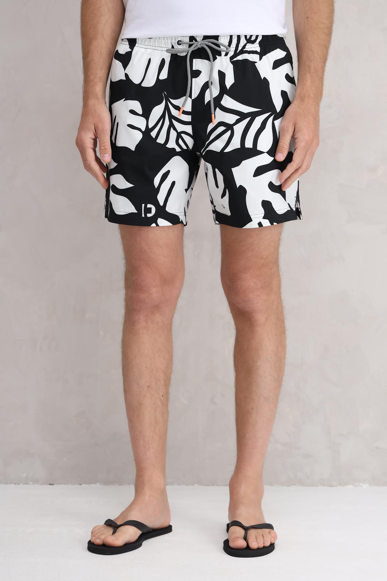 Плавательные шорты Tom Tailor чёрно-белые с узором листья