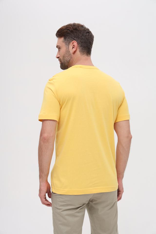 Футболка имеет классический прямой крой, который обеспечивает свободу движений и комфортную посадку по фигуре. Короткие рукава и круглый вырез горловины делают её идеальным выбором для тёплой погоды.