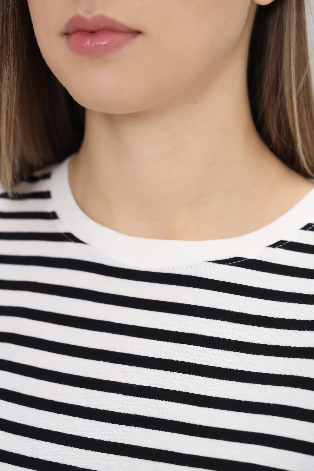 - Классический дизайн: Полосатый принт и прямой крой делают эту футболку актуальной вне времени.
