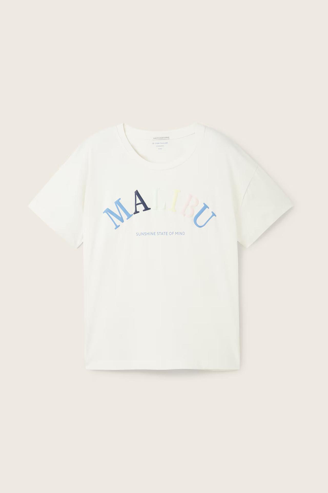 Мягкая и удобная футболка Tom Tailor из 100% хлопка – идеальный выбор для активных игр и отдыха вашего ребенка. Эта футболка обеспечит комфорт в течение всего дня, а стильный дизайн с надписью Malibu добавит образу ярких красок.