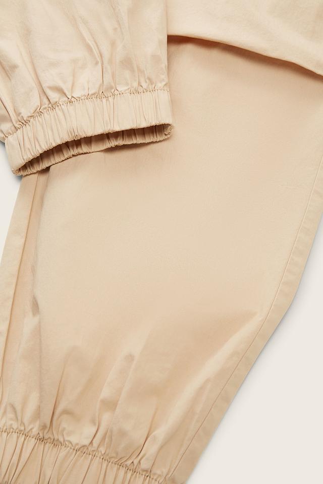 Брюки имеют свободный крой, не сковывающий движения, и эластичный пояс с утяжкой, обеспечивающий комфортную посадку. Манжеты на щиколотках добавляют образу аккуратности и стиля.