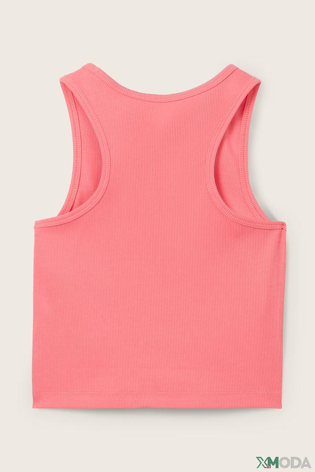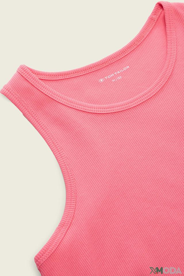 Футболка имеет классический крой без рукавов и круглый вырез горловины. Текстура ткани – в рубчик, что придает ей особый стиль и фактурность. Одежда легко сочетается с другими элементами гардероба, такими как джинсы, шорты или юбки.
