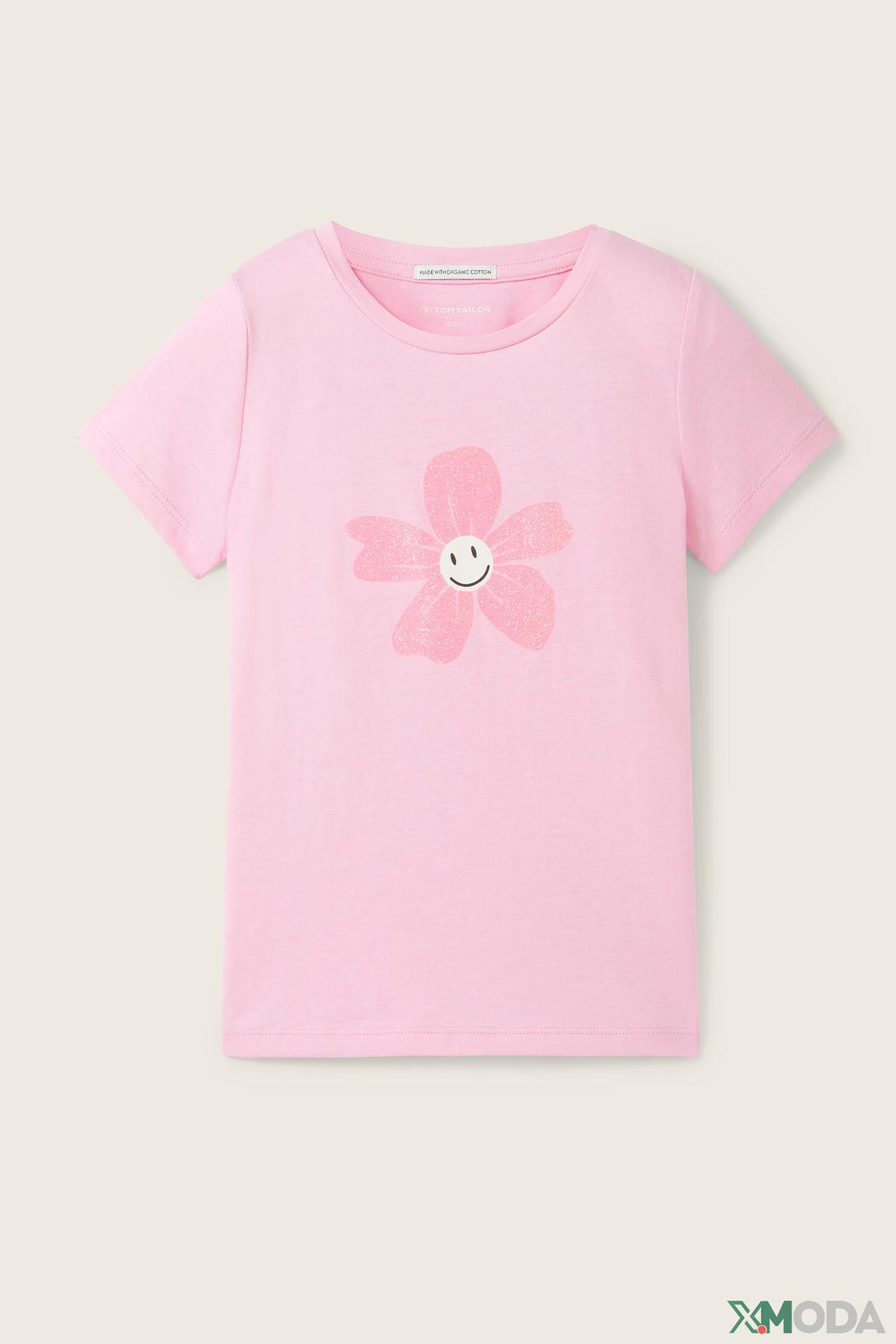 Футболка Tom Tailor детская розовая с цветочным принтом