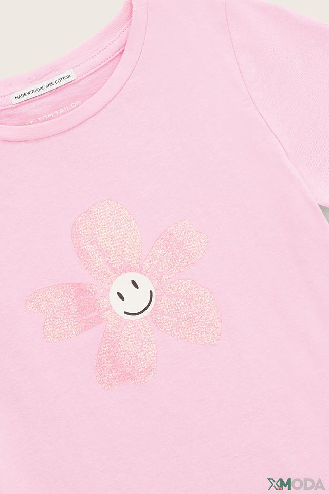 Розовая футболка Tom Tailor для девочки с ярким принтом в виде цветка. Изготовлена из 100% хлопка, обеспечивая комфорт и удобство в носке. Отличный выбор для повседневной носки и активных игр. Состав: хлопок 100%
