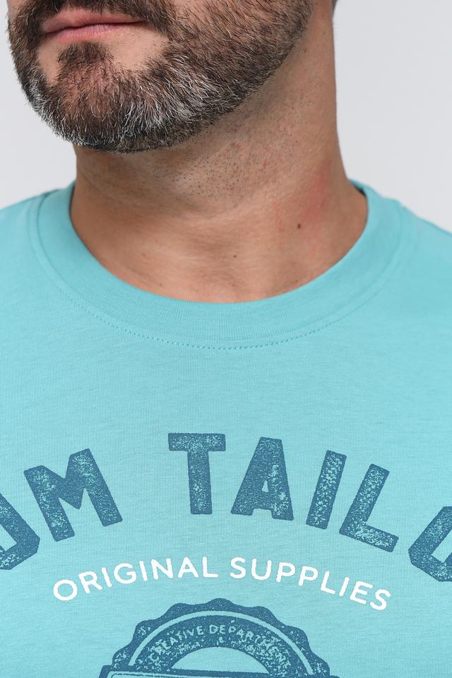 Мужская футболка Tom Tailor мятного цвета с оригинальным принтом на груди. Изготовлена из 100% хлопка, обеспечивающего комфорт и воздухопроницаемость. Отличный выбор для повседневного образа. Состав: хлопок 100%