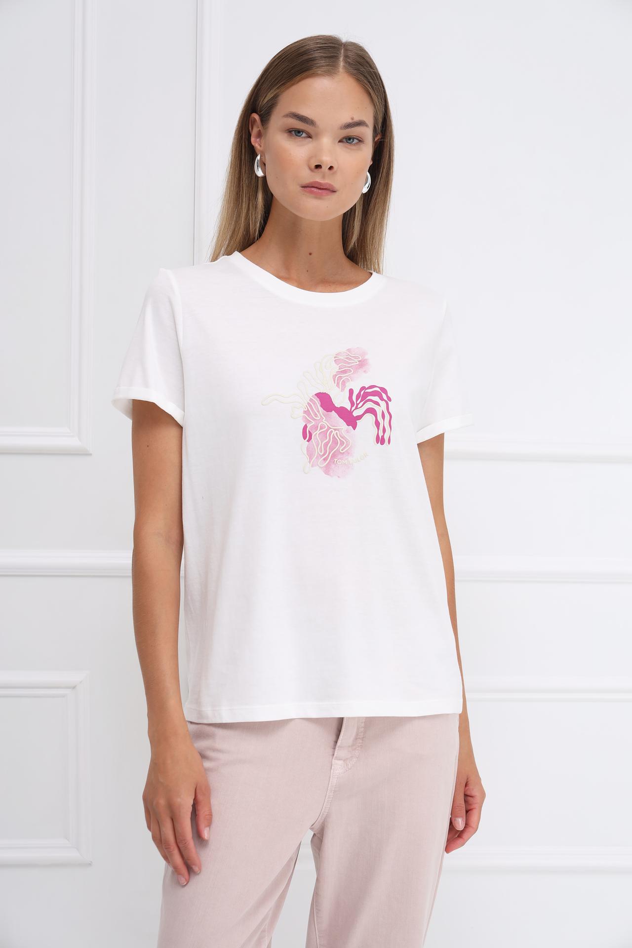 Оригинальная белая футболка от Tom Tailor, выполненная из 100% хлопка, станет отличным дополнением к вашему повседневному гардеробу. Мягкий и дышащий материал обеспечит комфорт в течение всего дня. Стильный принт добавит образу индивидуальности и выразительности. Эта футболка идеально подходит для создания модных и непринужденных образов.