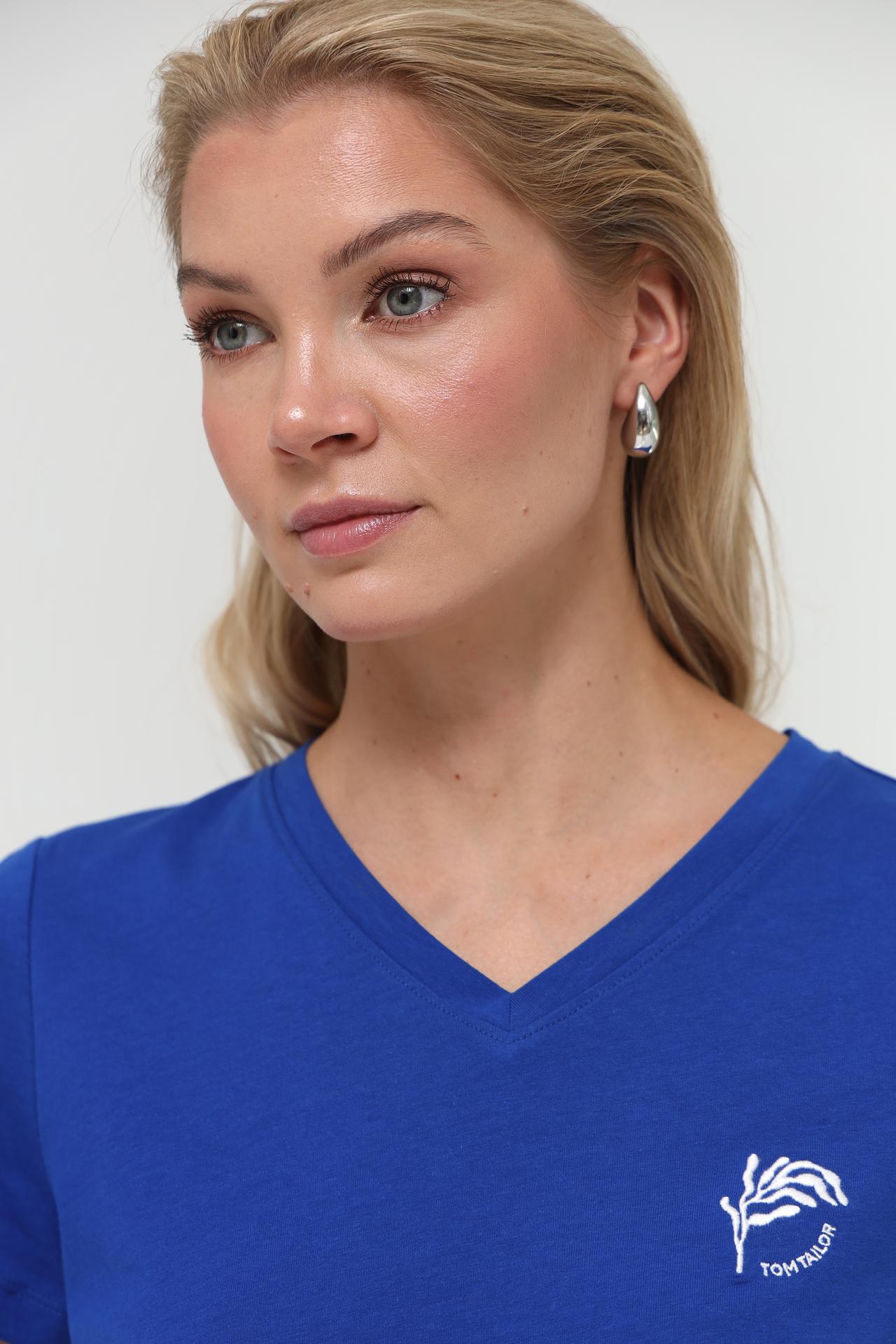 Эта футболка Tom Tailor станет незаменимой вещью в вашем гардеробе. Изготовленная из 100% хлопка, она обеспечит вам комфорт и свободу движений в течение всего дня. Классический крой и V-образный вырез делают ее универсальной для создания множества образов. Небольшая вышивка добавляет изысканности и индивидуальности.