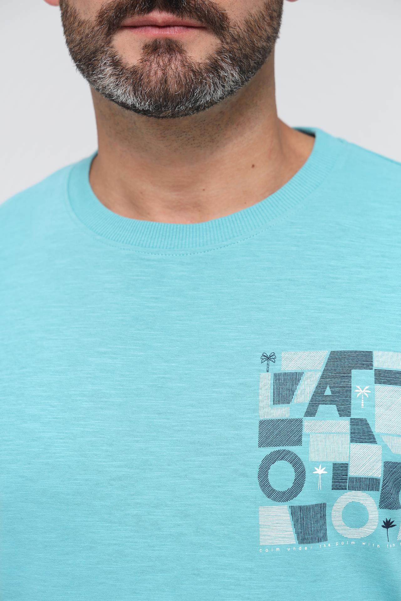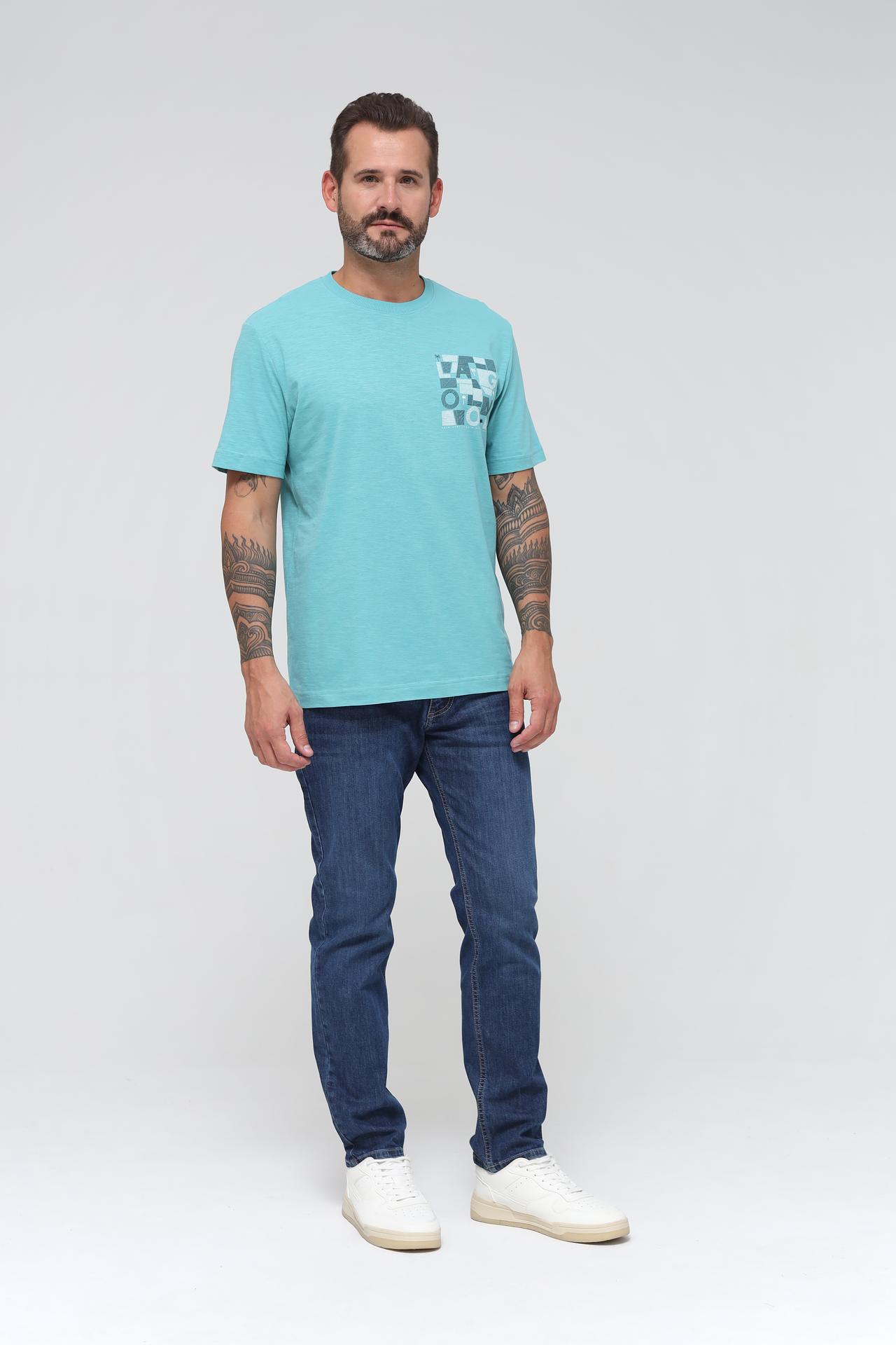 Стильный принт на груди добавляет футболке оригинальности и делает ее отличным дополнением к любому образу. Классический дизайн и высокое качество пошива гарантируют долговечность изделия.