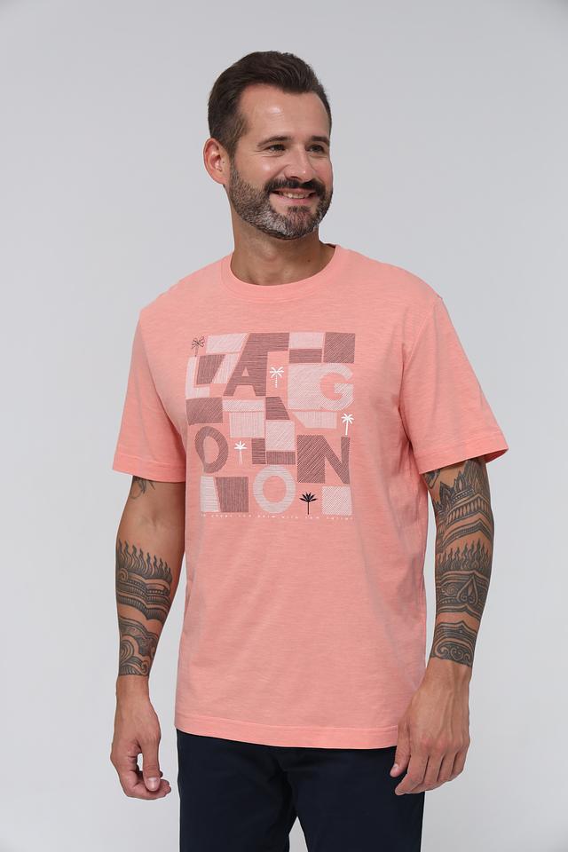 Мужская футболка Tom Tailor персикового цвета с оригинальным графичным принтом. Изготовлена из 100% хлопка, обеспечивающего комфорт и воздухопроницаемость. Стильный и удобный выбор для повседневной носки. Состав: хлопок 100%