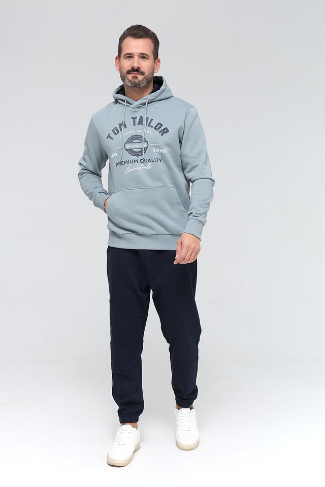 Мужская толстовка Tom Tailor голубого цвета с капюшоном — это удобная и стильная модель для повседневной носки. Выполнена из мягкого хлопка с добавлением полиэстера, имеет оригинальный принт с логотипом бренда. Состав: хлопок 70%, полиэстер 30%