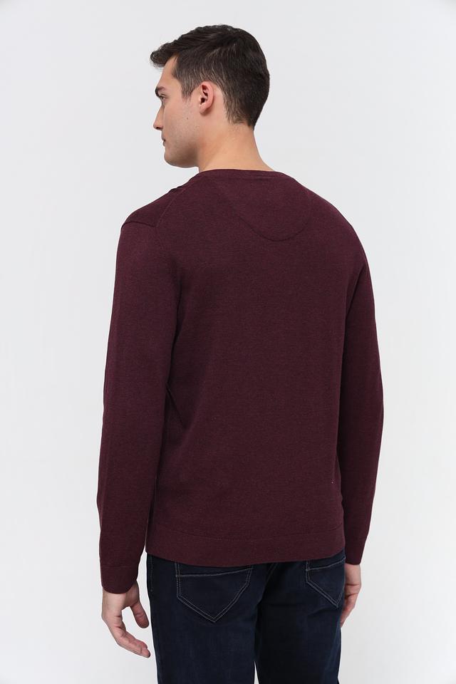Модель имеет классический V-образный вырез, который подчеркивает мужественность силуэта. Винный цвет придает изделию элегантность и универсальность, позволяя легко сочетать его с различными элементами гардероба.