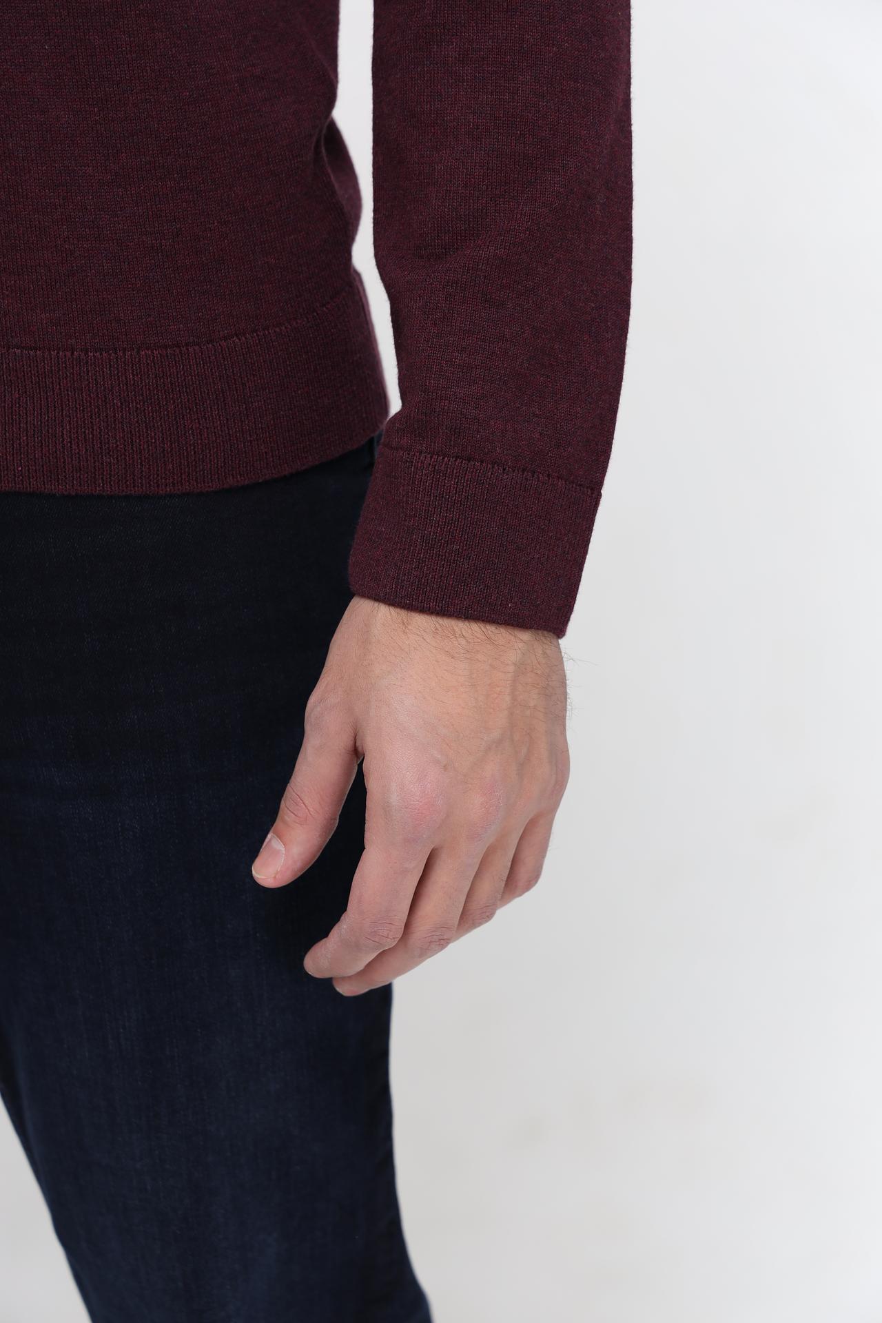 - Цвет. Бордовый оттенок придает образу элегантность и позволяет легко сочетать пуловер с различными элементами гардероба.
