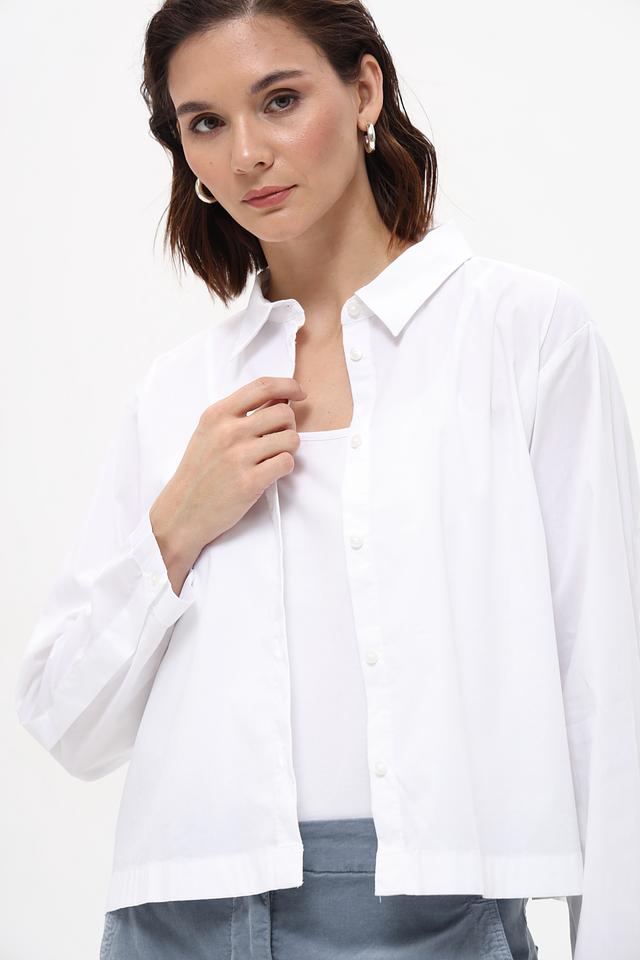 Блуза имеет прямой крой, длинные рукава и застежку на пуговицы по всей длине. Изготовлена из качественного хлопка с добавлением полиамида и эластана, что обеспечивает комфорт и удобство в носке.