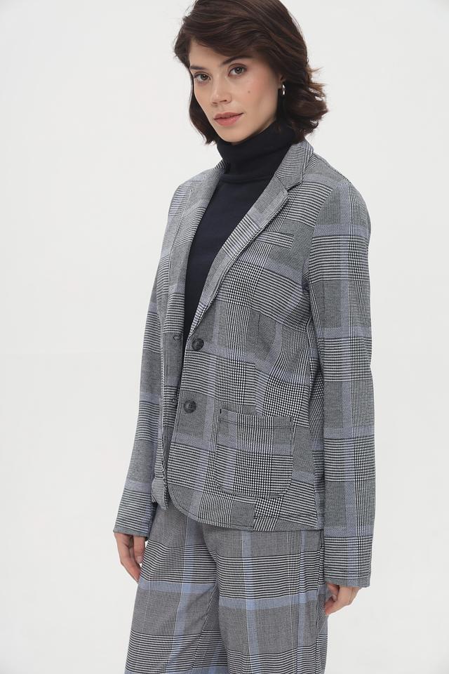 Этот жакет от Tom Tailor – идеальный выбор для создания элегантного и современного образа. Жакет выполнен в серой цветовой гамме и украшен классическим клетчатым принтом, который придает ему особый шарм.