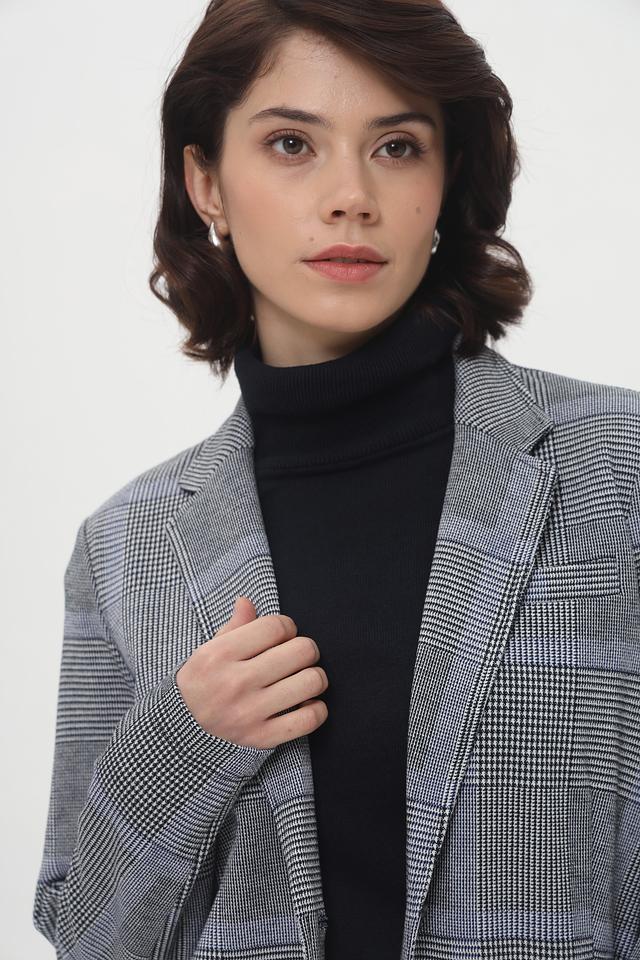 Состав ткани: 62% полиэстер, 35% вискоза, 3% эластан. Это сочетание обеспечивает приятные тактильные ощущения, легкость и устойчивость к сминанию. Жакет идеально подходит для повседневной носки и особых случаев.
