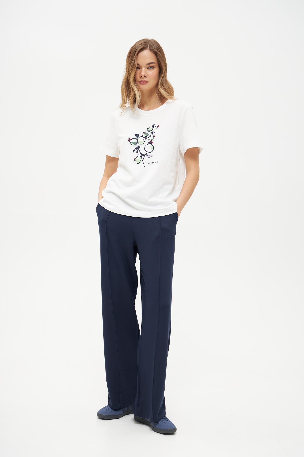 Элегантные и комфортные брюки Tom Tailor - идеальное решение для создания стильного образа. Благодаря высокому качеству ткани, брюки отлично держат форму и приятны к телу. Прямой крой и высокая посадка визуально удлиняют ноги, а эластичный пояс обеспечивает комфортную посадку в течение всего дня. Отличный выбор для тех, кто ценит комфорт и стиль в одежде. Подходят для любого случая, будь то деловая встреча или прогулка по городу.