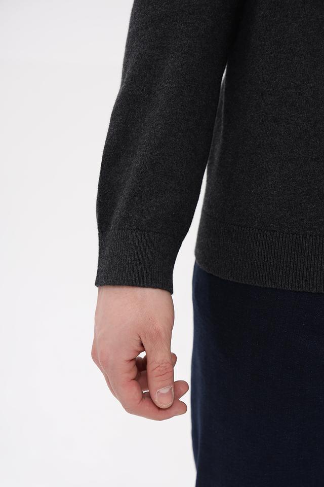 Джемпер выполнен в сером меланжевом цвете, который легко сочетается с различными стилями одежды. Текстура ткани с меланжевым эффектом придает изделию современный и стильный вид.