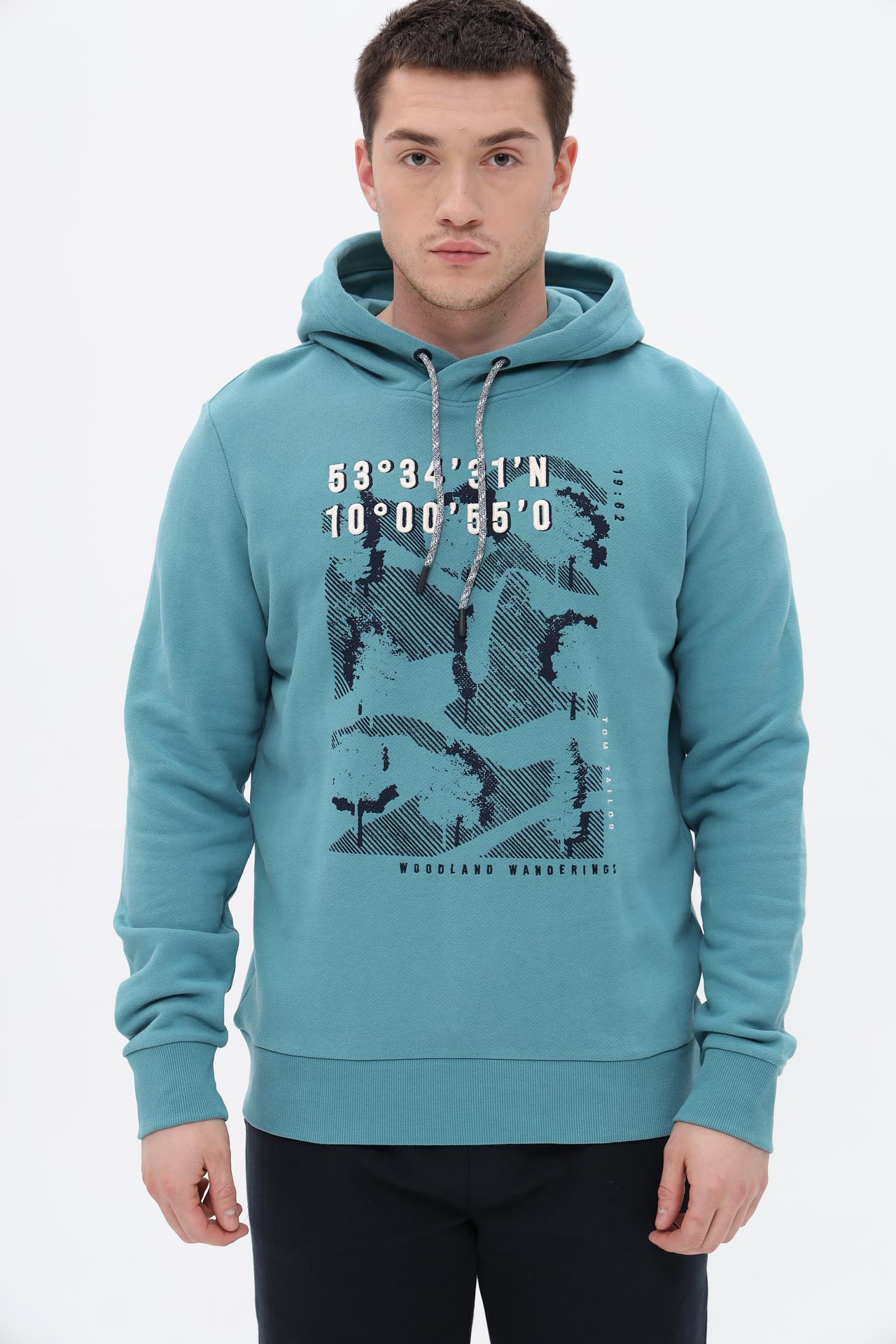 Бирюзовая толстовка Tom Tailor с принтом и капюшоном