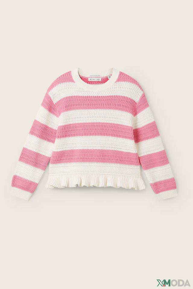 Детский пуловер Tom Tailor в бело-розовую полоску – удобная и стильная модель из 100% хлопка. Мягкий трикотаж и деликатный воротник делают этот пуловер идеальным выбором для повседневной носки. Состав: хлопок 100%