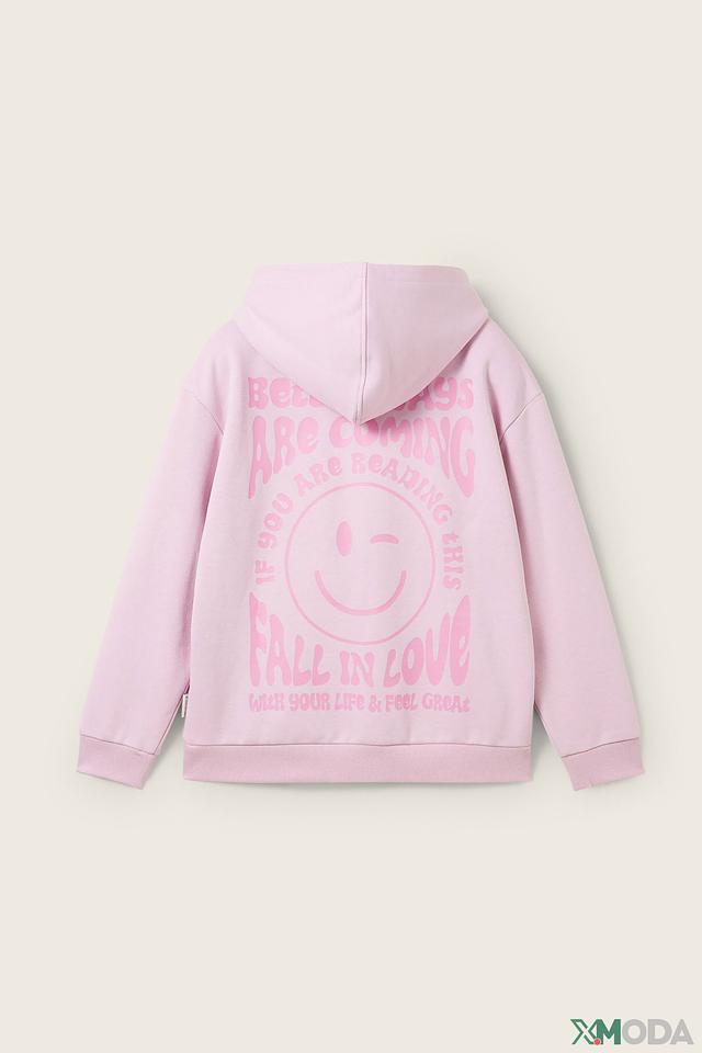 Свитшот Tom Tailor для девочки, лавандового цвета, с оригинальным принтом и удобным капюшоном. Изготовлен из мягкого хлопка с добавлением полиэстера для комфорта и долговечности. Идеальный выбор для повседневной носки. Состав: хлопок 60%, полиэстер 40%