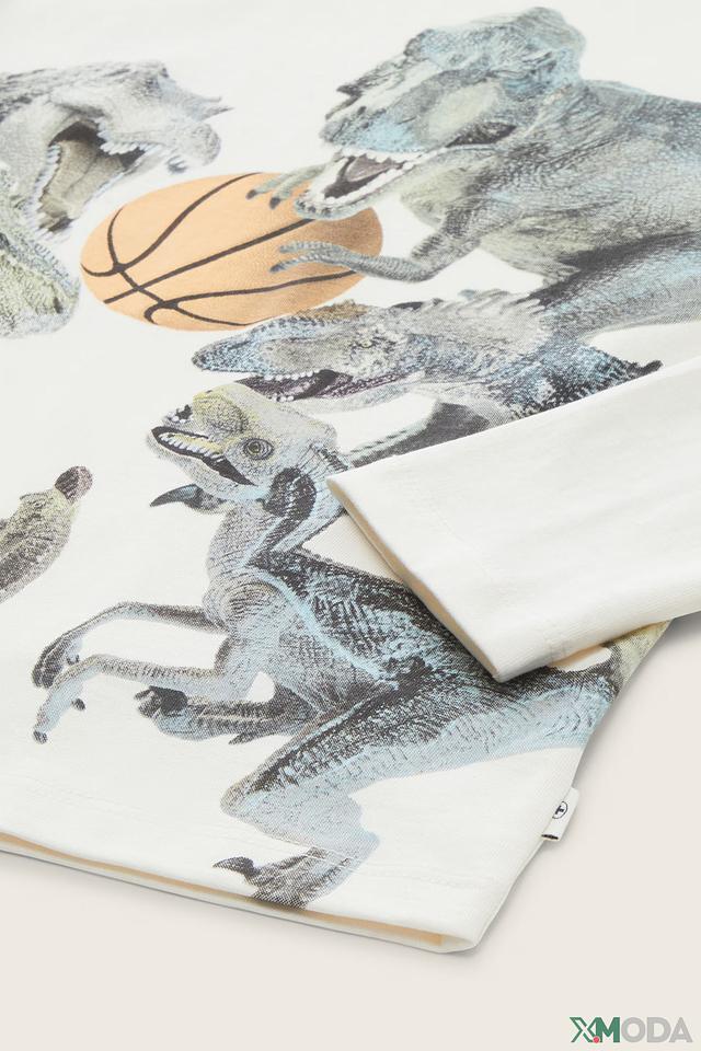 Эта стильная футболка от Tom Tailor идеально подойдёт для активных мальчиков. Футболка выполнена в белом цвете и украшена красочным принтом с изображением динозавров, играющих в баскетбол.