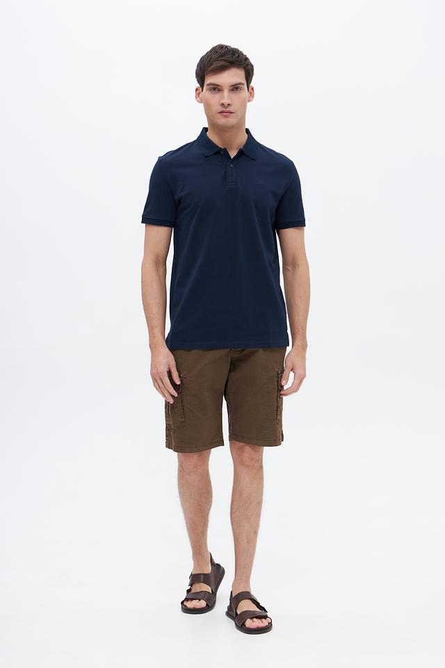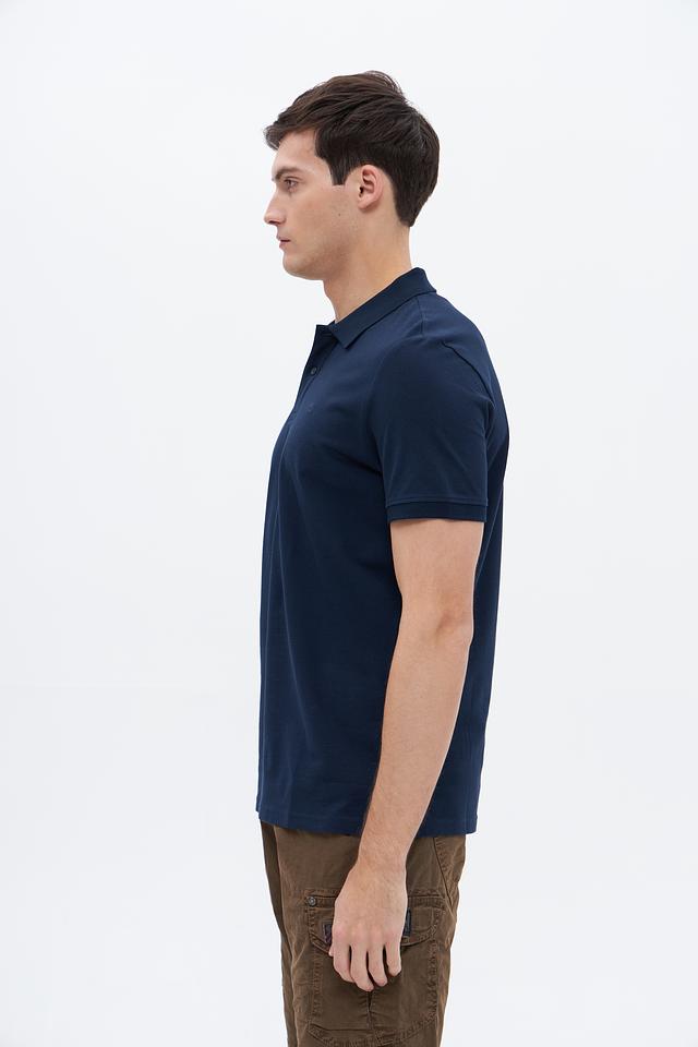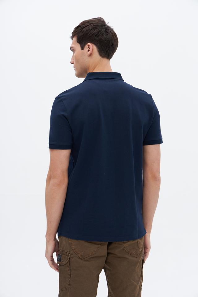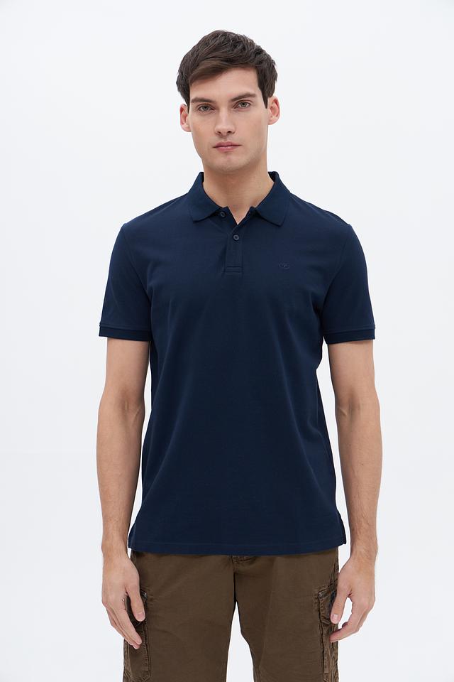 Классический крой поло идеально подходит для любого типа фигуры. Тёмно-синий цвет делает эту модель универсальной и легко сочетаемой с другими элементами гардероба. Минималистичный дизайн с небольшим логотипом бренда на груди добавляет элегантности.