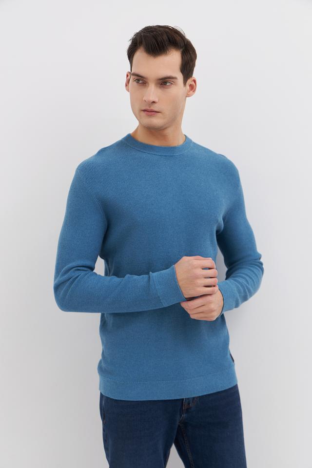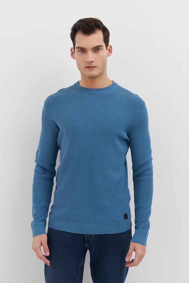 Джемпер выполнен в приятном голубом цвете с текстурной вязкой, придающей ему особый шарм. Минималистичный дизайн дополнен небольшим логотипом бренда на груди. Округлый вырез горловины и длинные рукава обеспечивают удобную посадку.