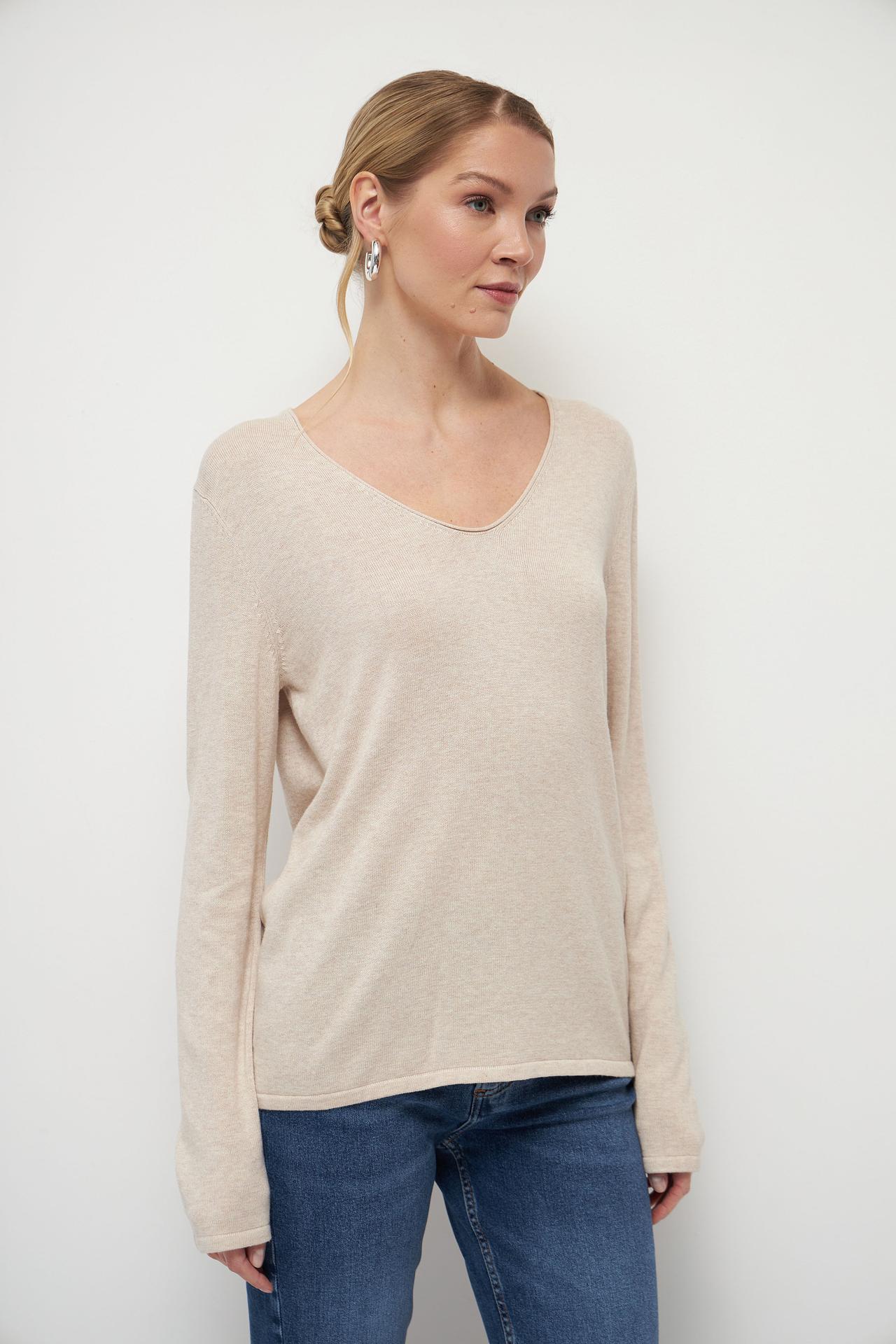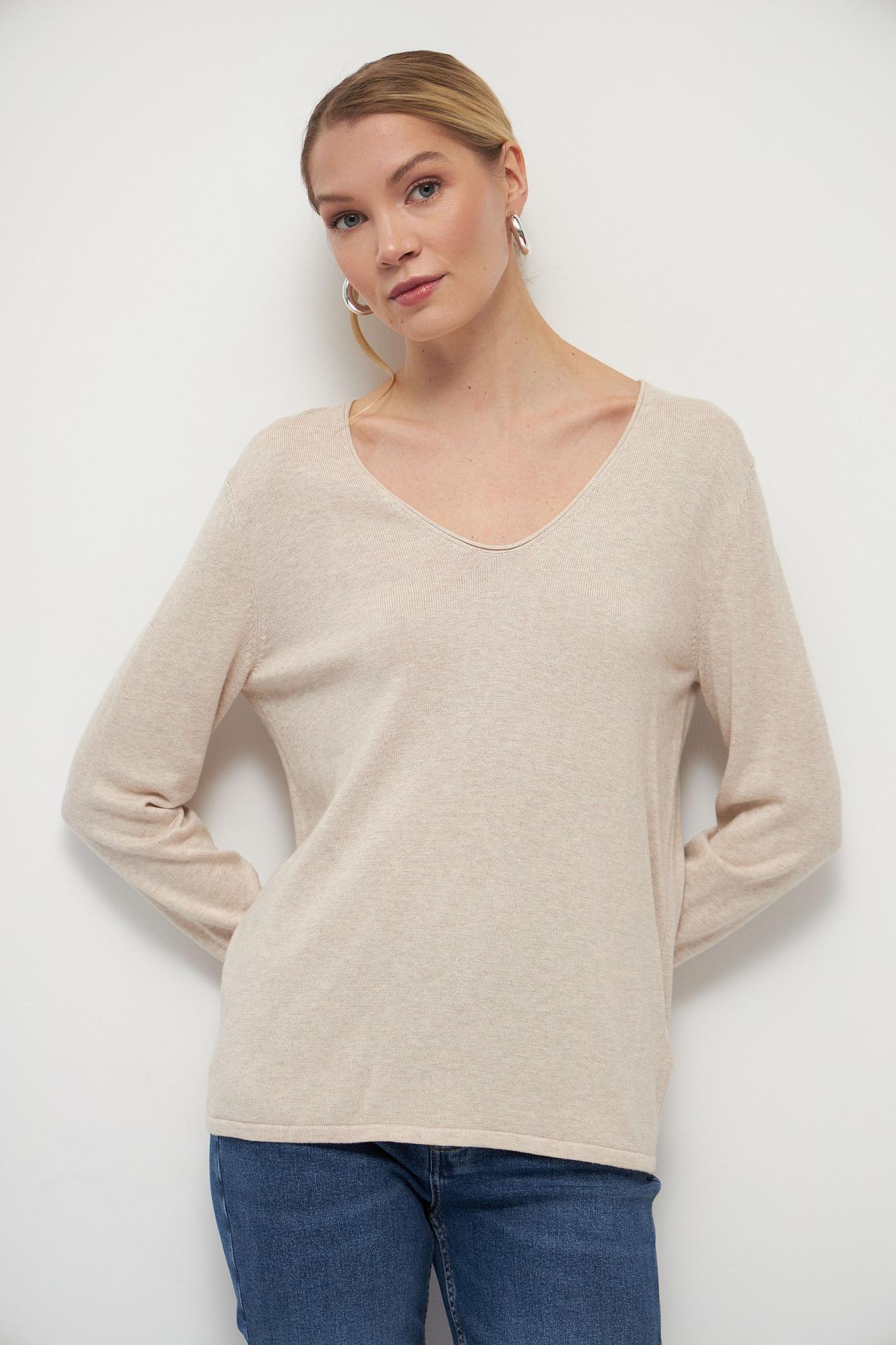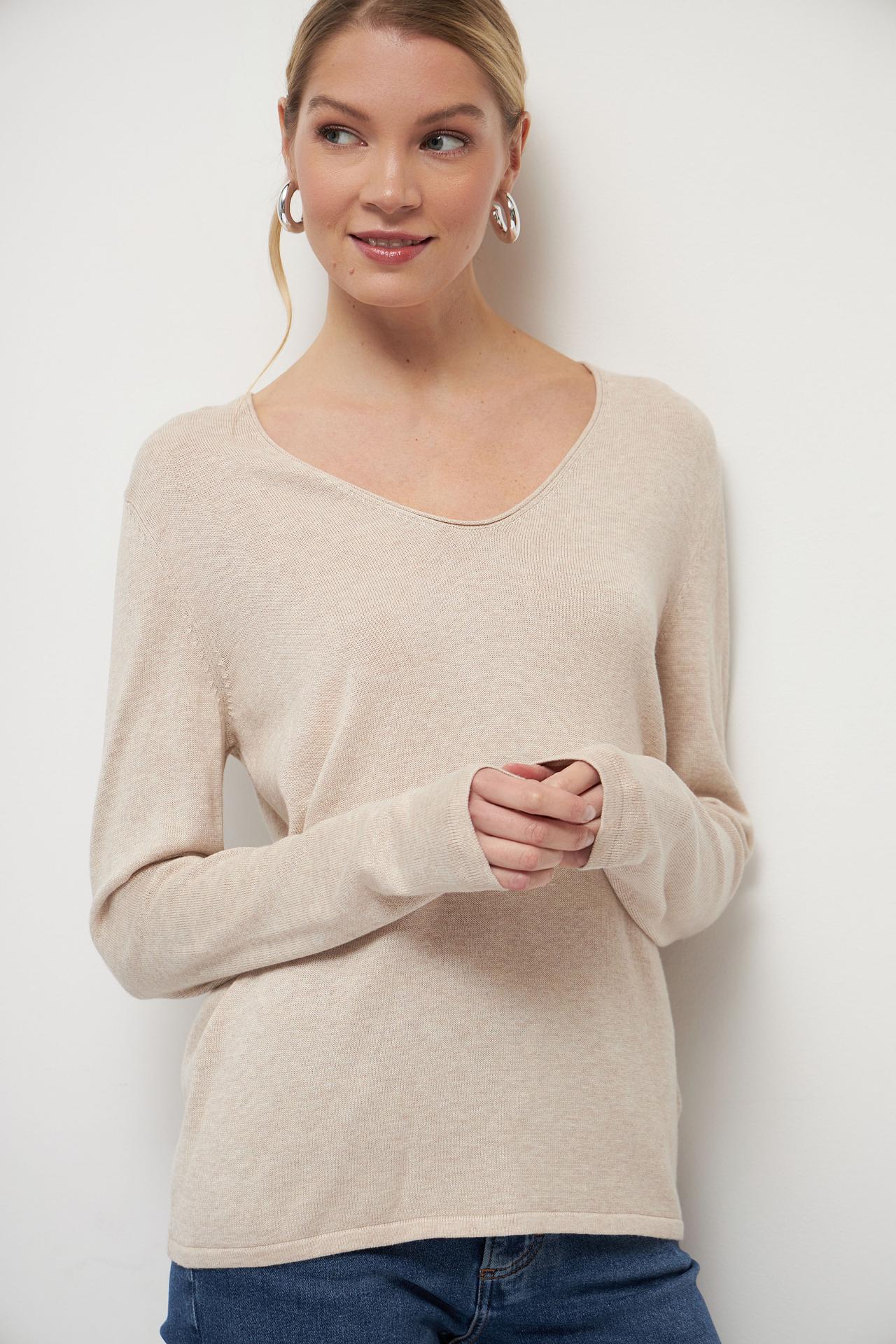 Пуловер Tom Tailor бежевый с V-образным вырезом