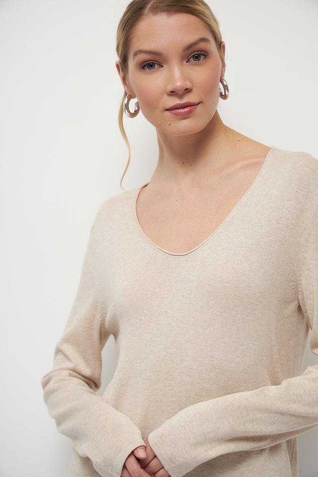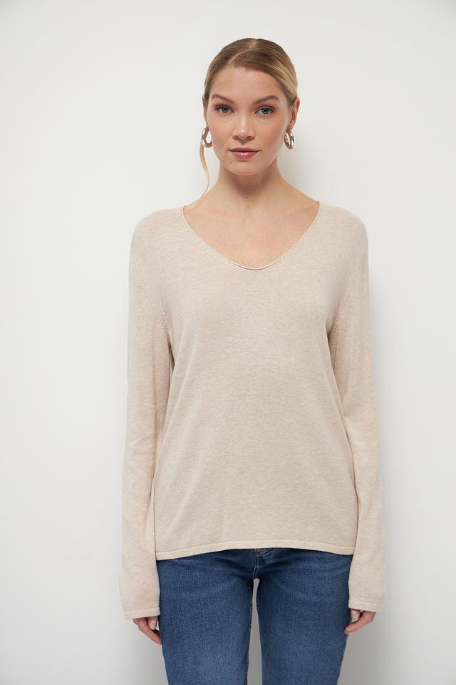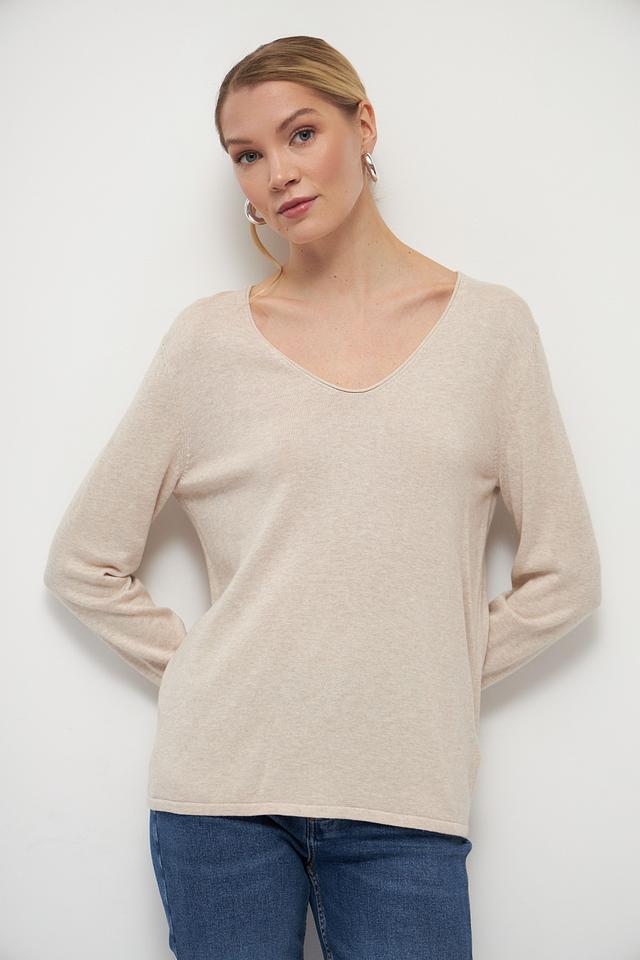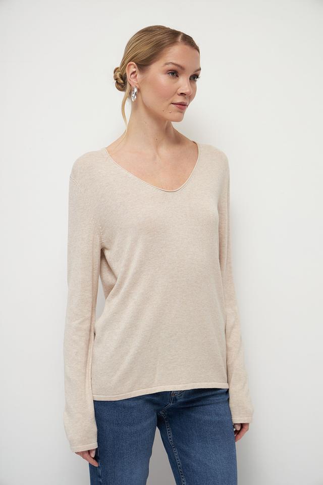 Бежевый пуловер от Tom Tailor с V-образным вырезом, выполненный из 100% хлопка. Удобный крой и натуральный состав обеспечивают комфорт в повседневной носке. Состав: хлопок 100%