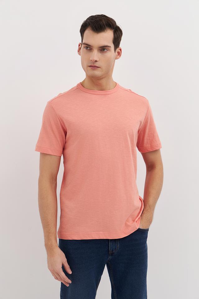 Эта мужская футболка от Tom Tailor выполнена в нежном персиковом цвете и станет отличным дополнением к вашему гардеробу. Классический крой и круглый вырез делают ее универсальной для различных образов.