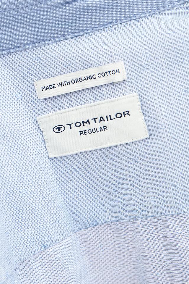 Голубая рубашка с длинным рукавом от Tom Tailor выполнена из 100% хлопка. Модель имеет классический крой, воротник и застёжку на пуговицах тёмно-синего цвета, а также нагрудный карман. Состав: хлопок 100%