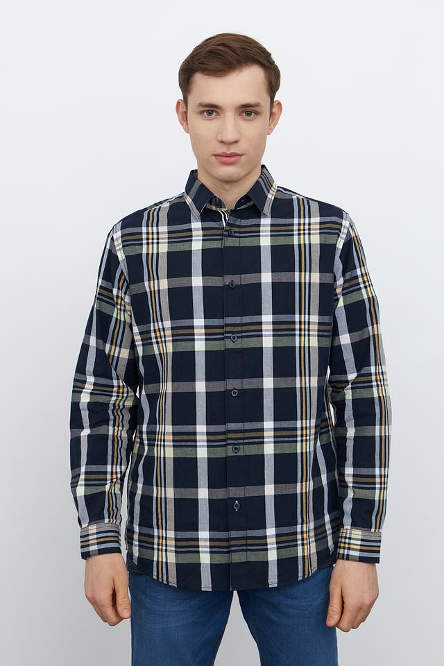 Мужская рубашка Tom Tailor синего цвета в классическую клетку. Изготовлена из 100% хлопка, обеспечивающего комфорт и воздухопроницаемость. Отличный выбор для создания повседневного образа. Состав: хлопок 100%