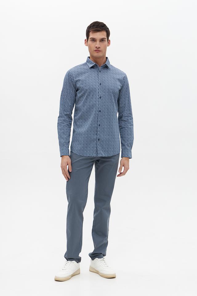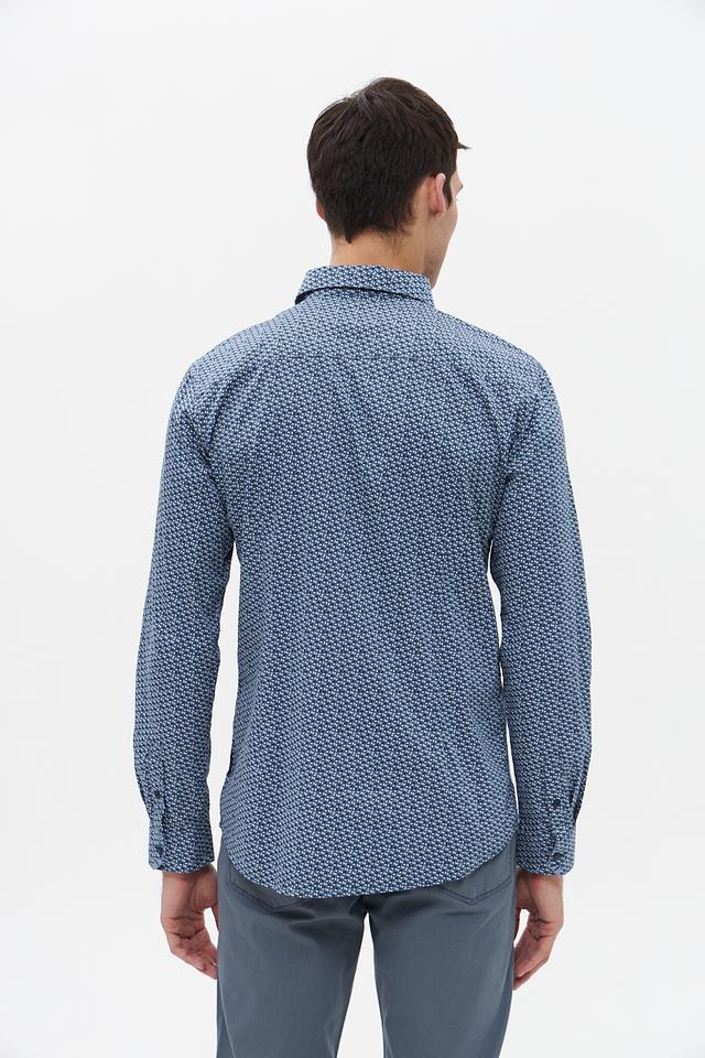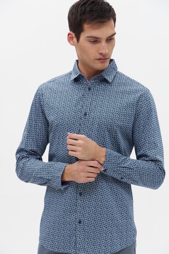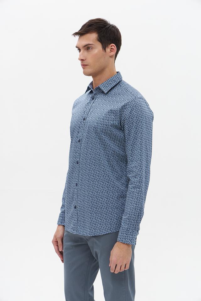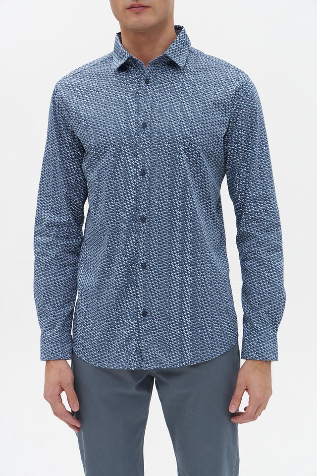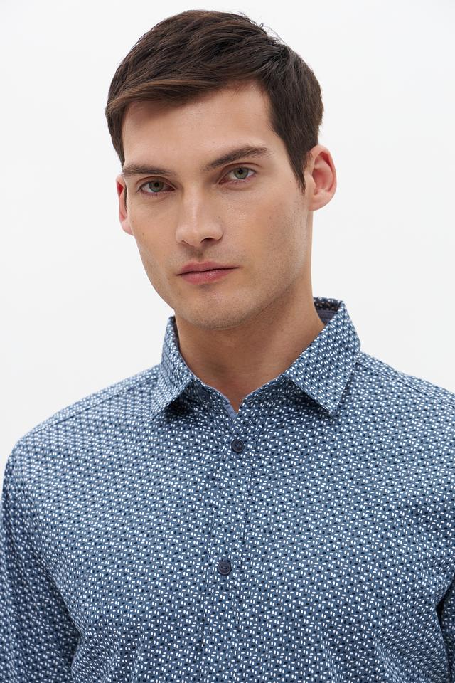 Мужская рубашка Tom Tailor синего цвета с длинным рукавом, выполнена в мелкий геометрический рисунок. Классический крой и состав из хлопка с добавлением эластана обеспечивают комфорт и удобство в носке. Состав: хлопок 98%, эластан 2%