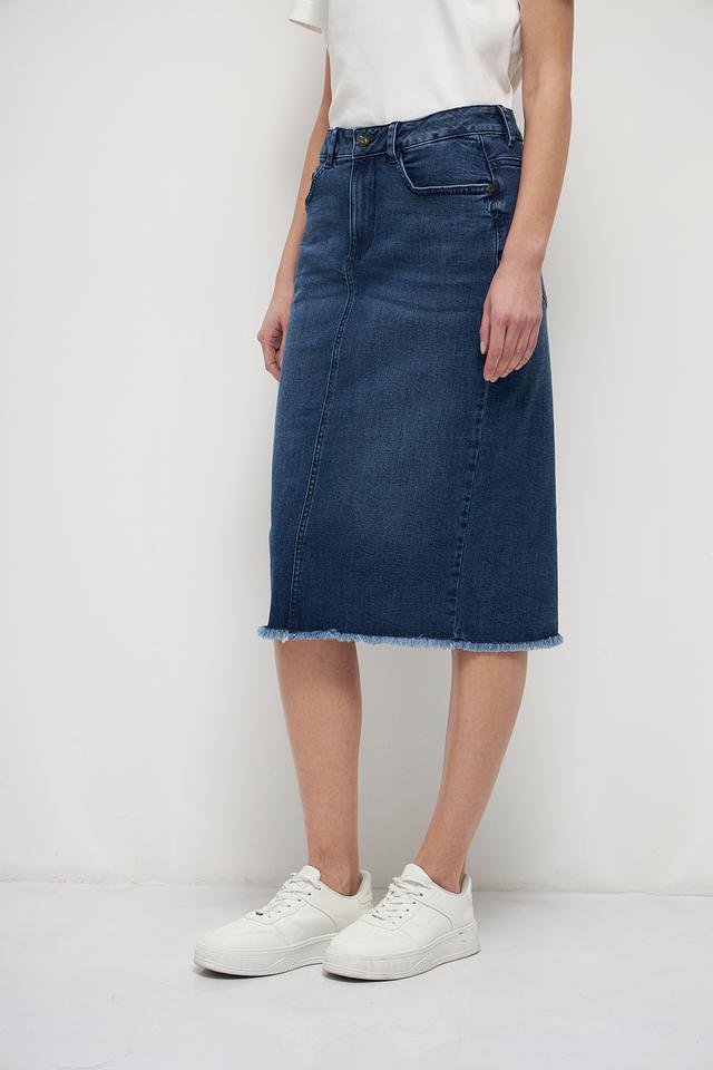 Эта джинсовая юбка от Tom Tailor станет незаменимой частью вашего гардероба. Классический синий цвет и универсальная длина миди делают ее подходящей для различных случаев.