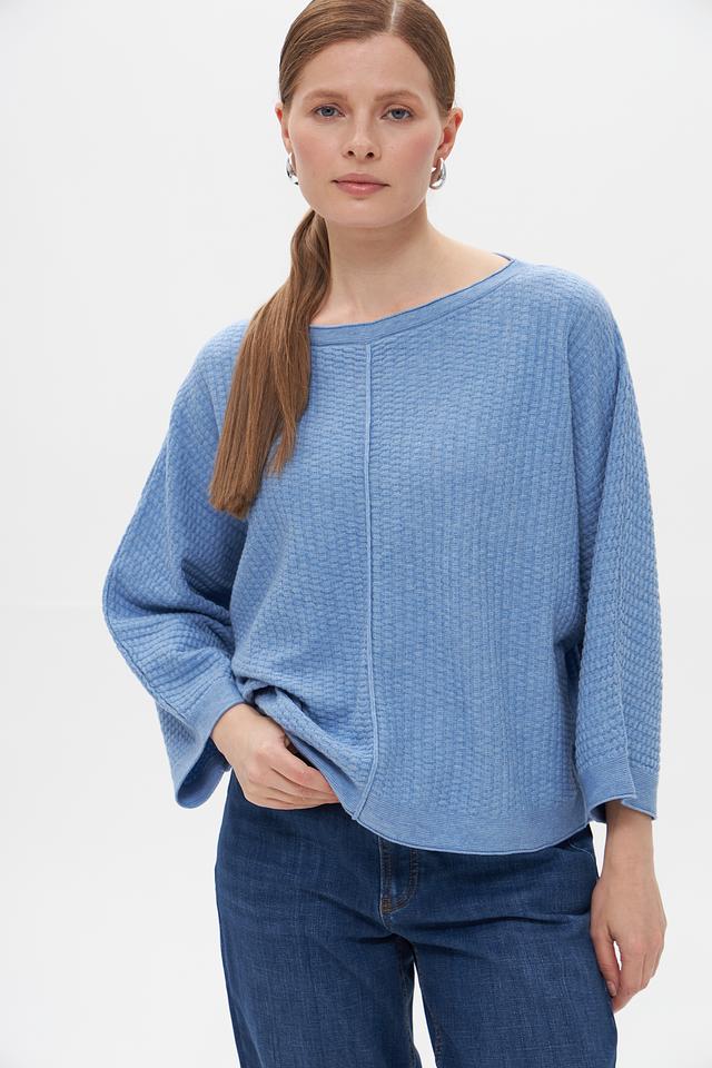 Женский пуловер Tom Tailor голубого цвета с объёмной текстурой. Изготовлен из сочетания полиэстера и хлопка, обеспечивающего комфорт и практичность. Свободный крой и оригинальный дизайн. Состав: полиэстер 65%, хлопок 35%