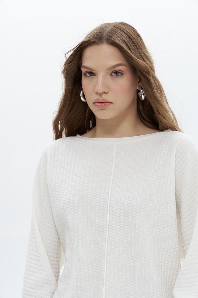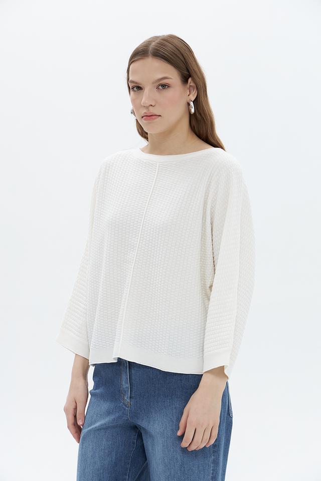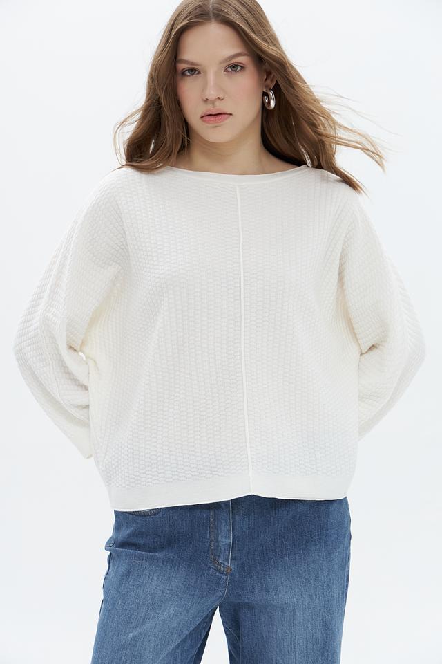 Пуловер имеет свободный крой и округлый вырез горловины, что обеспечивает максимальный комфорт при носке. Текстурная вязка добавляет изделию объём и оригинальность.